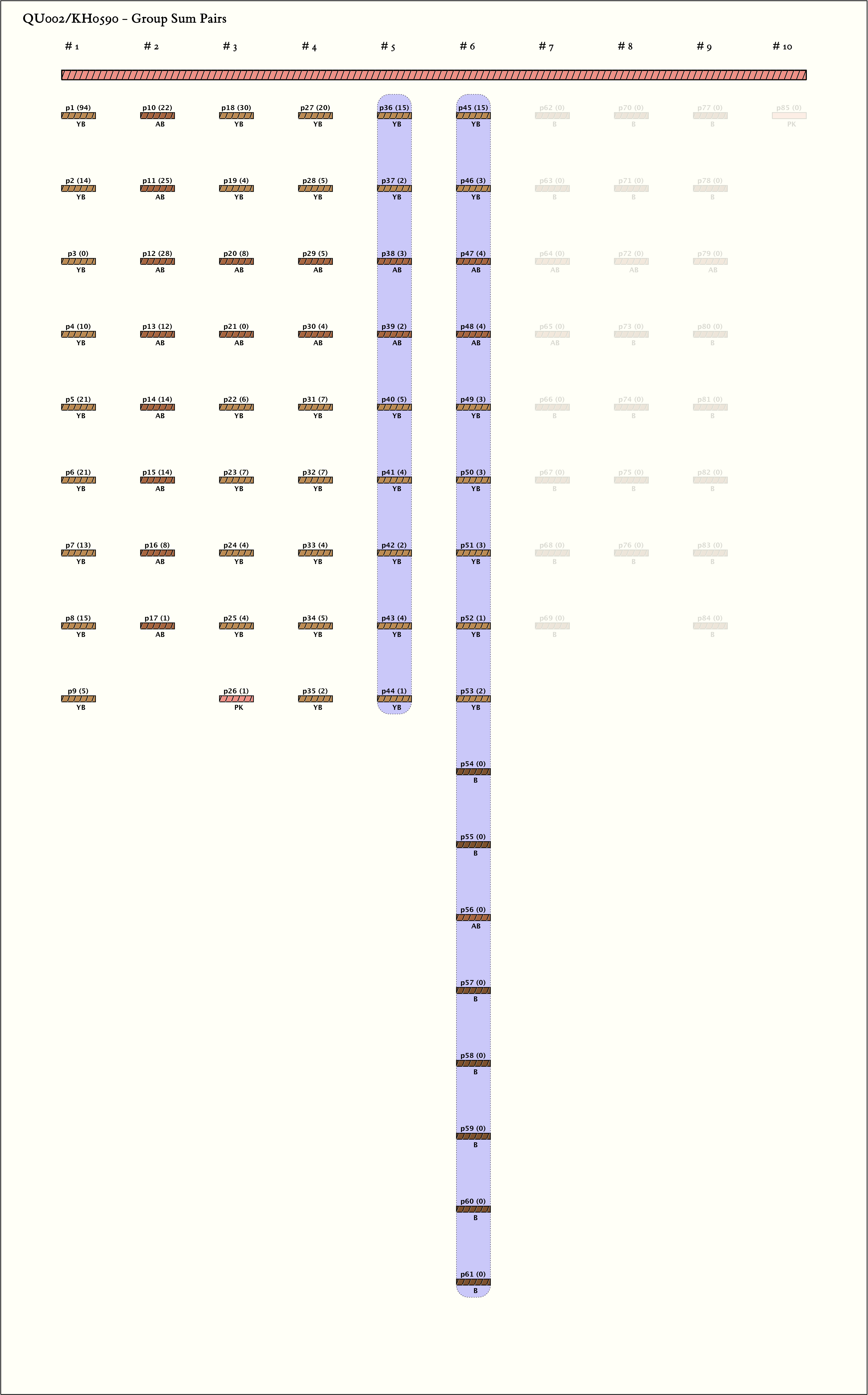 Groups 3, 4, and 5 share a color pattern: 2 YB 2 AB, 5 YB.