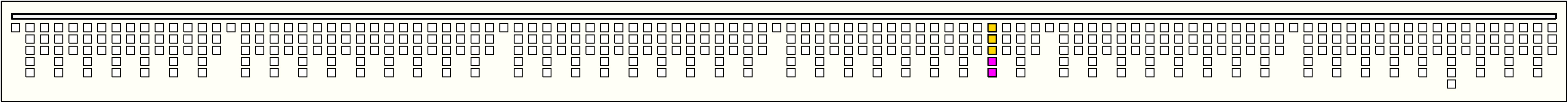 - The khipu is divided into 6 parts by markers. Each part is separated by spacing into 9 groups. Each group has 8 pendants and the same color pattern of 5 LB followed by 3 W.