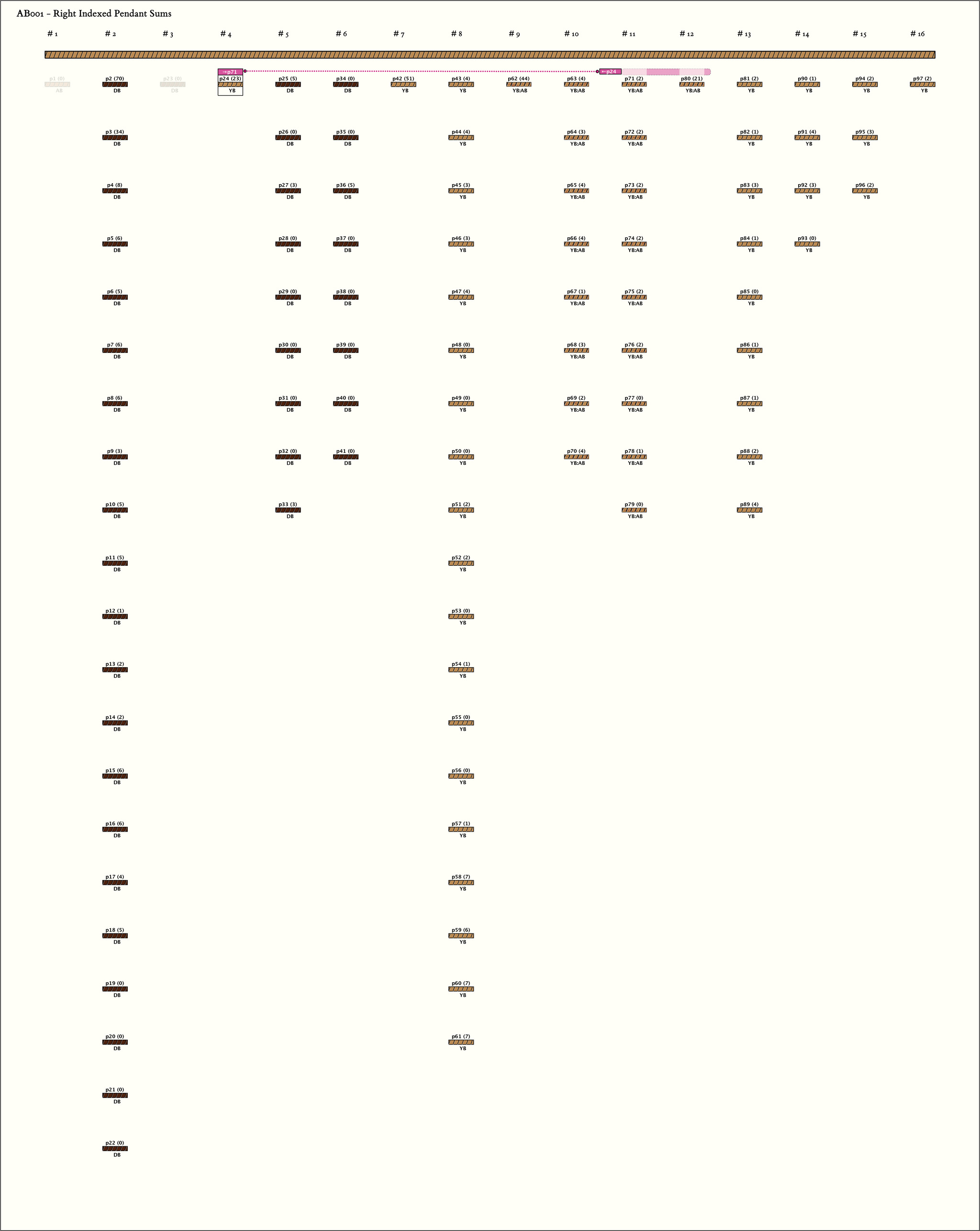 | 1 | ![]() | p244, 1 : 23YB | 23 | 2 | p71: 2YB:AB + p80: 21YB:AB |