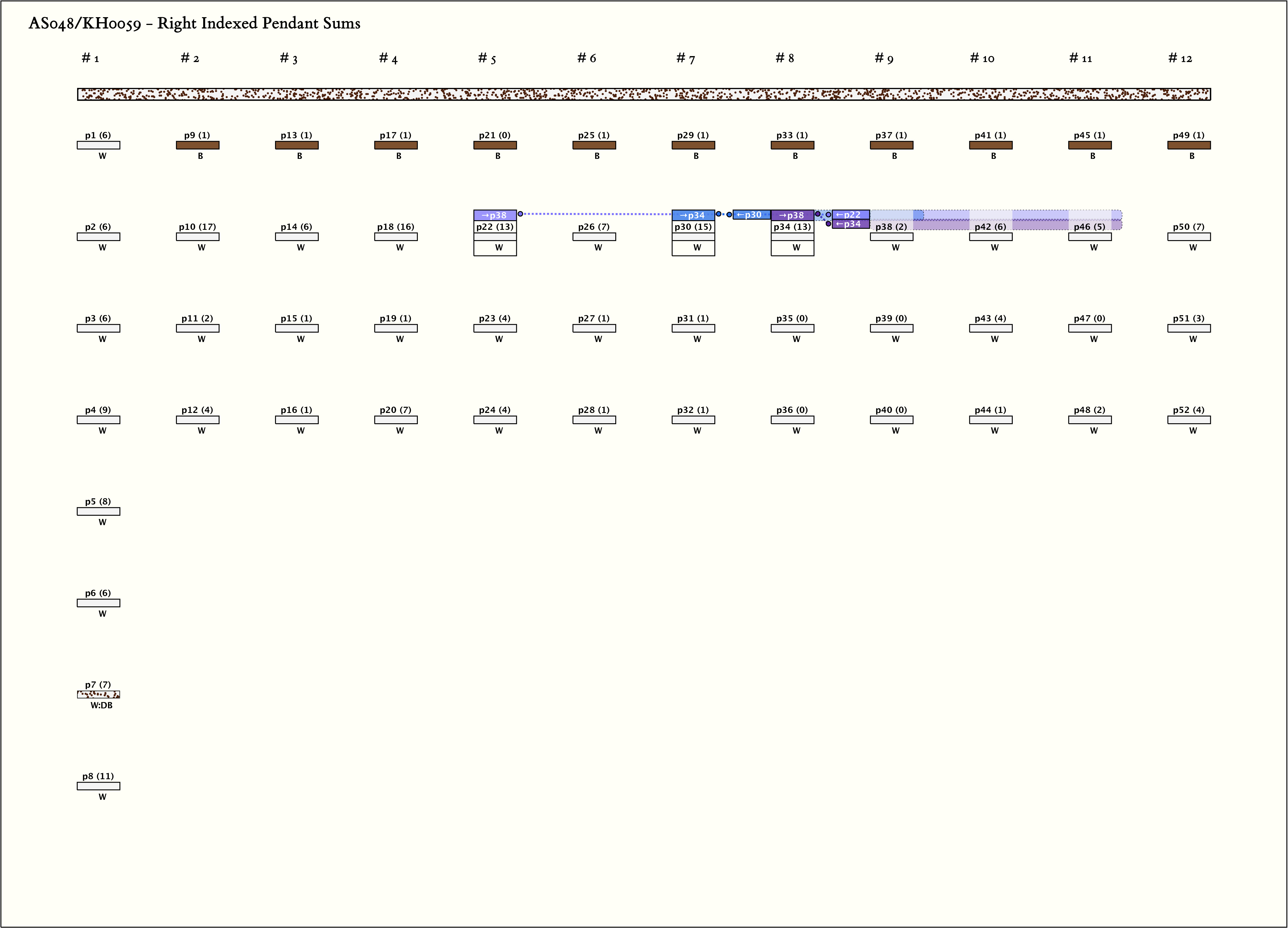| 1 | ![]() | p225, 2 : 13W | 13 | 3 | p38: 2W + p42: 6W + p46: 5W | |