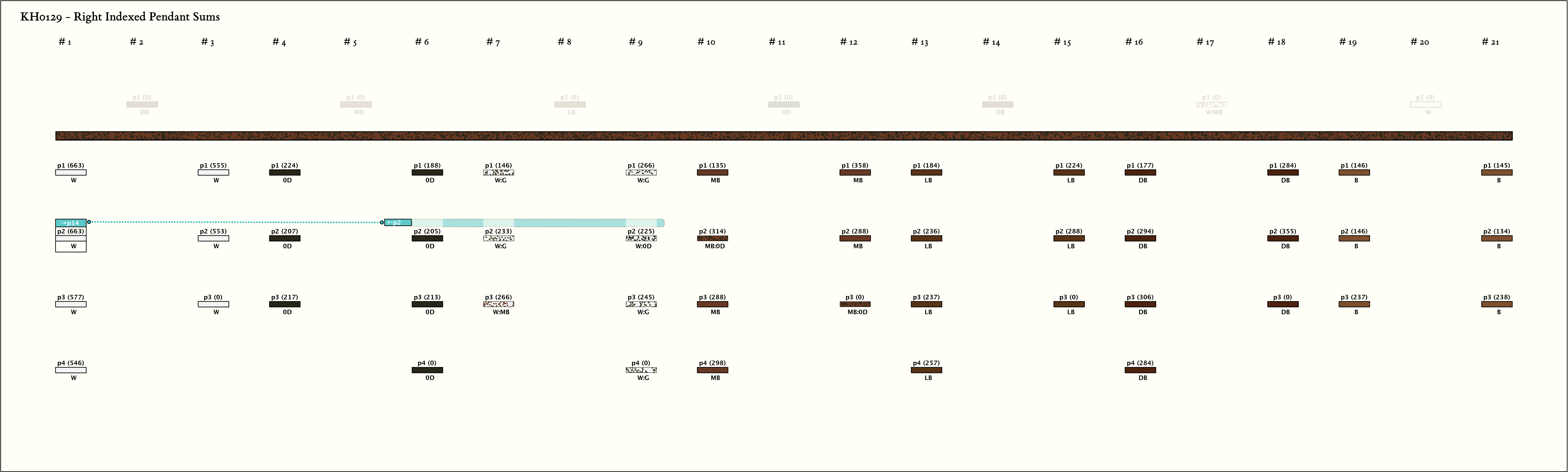 - Each top cord differs in color from the pendants of the associated group. All of the top cords are zero-valued (or blank).