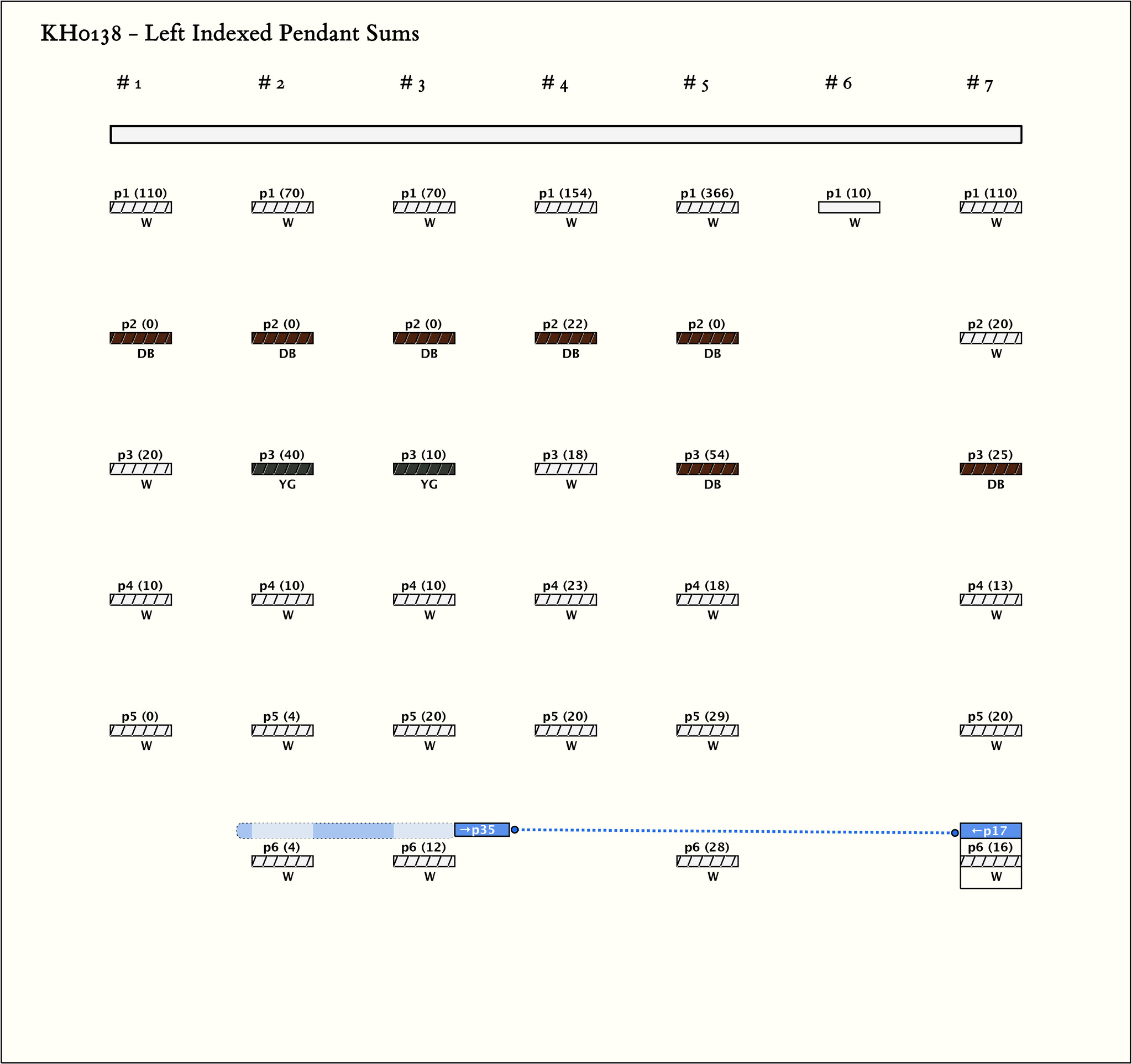 - Each group contains 5 or 6 pendants. In all groups, the first pendant and the last 3 pendants are W and, with the exception of the last group, the second pendant is DB.