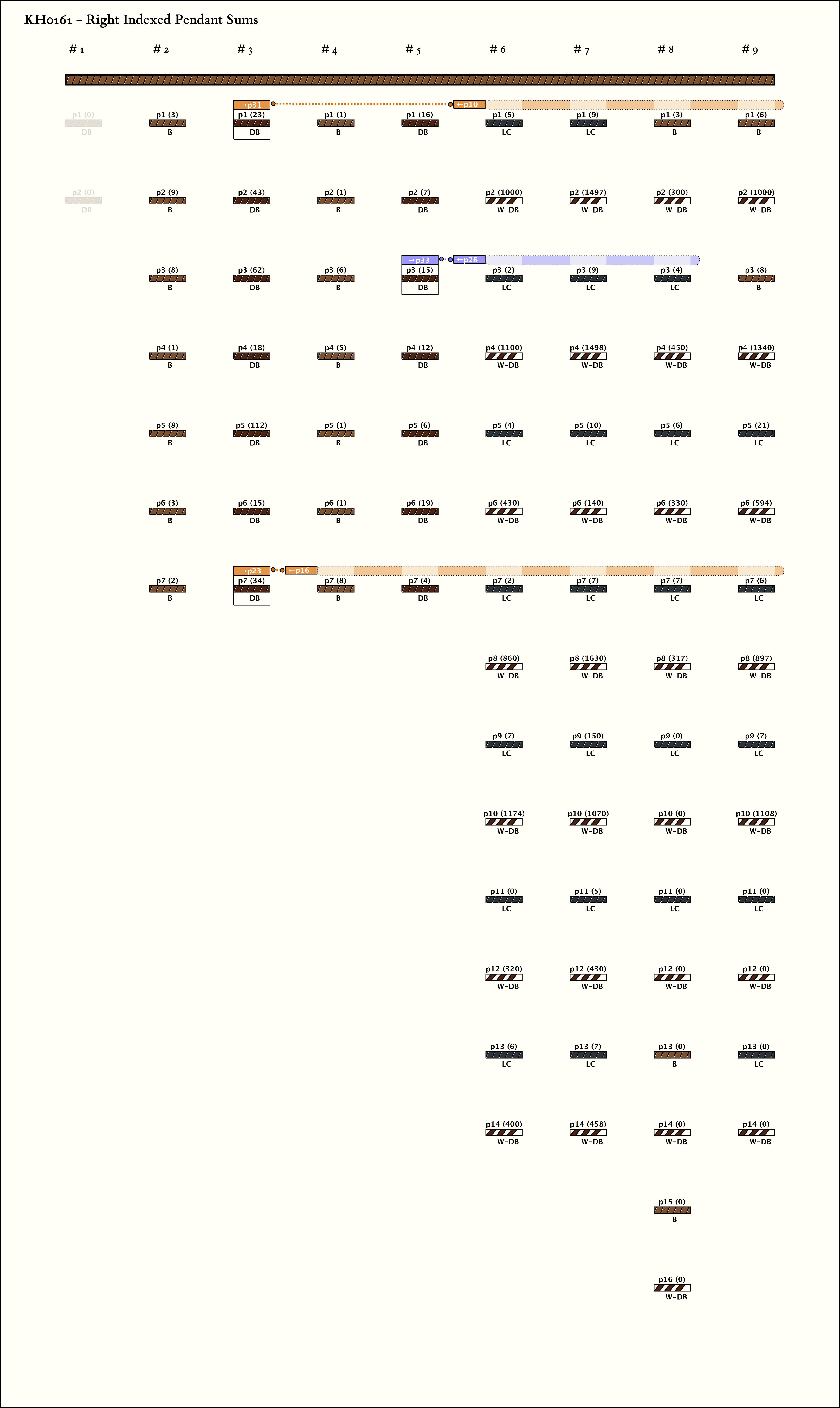 - A pendant fragment stored with the khipu was assumed to be part of pendant 37. Pendant 37 is broken at 16.0 cm.