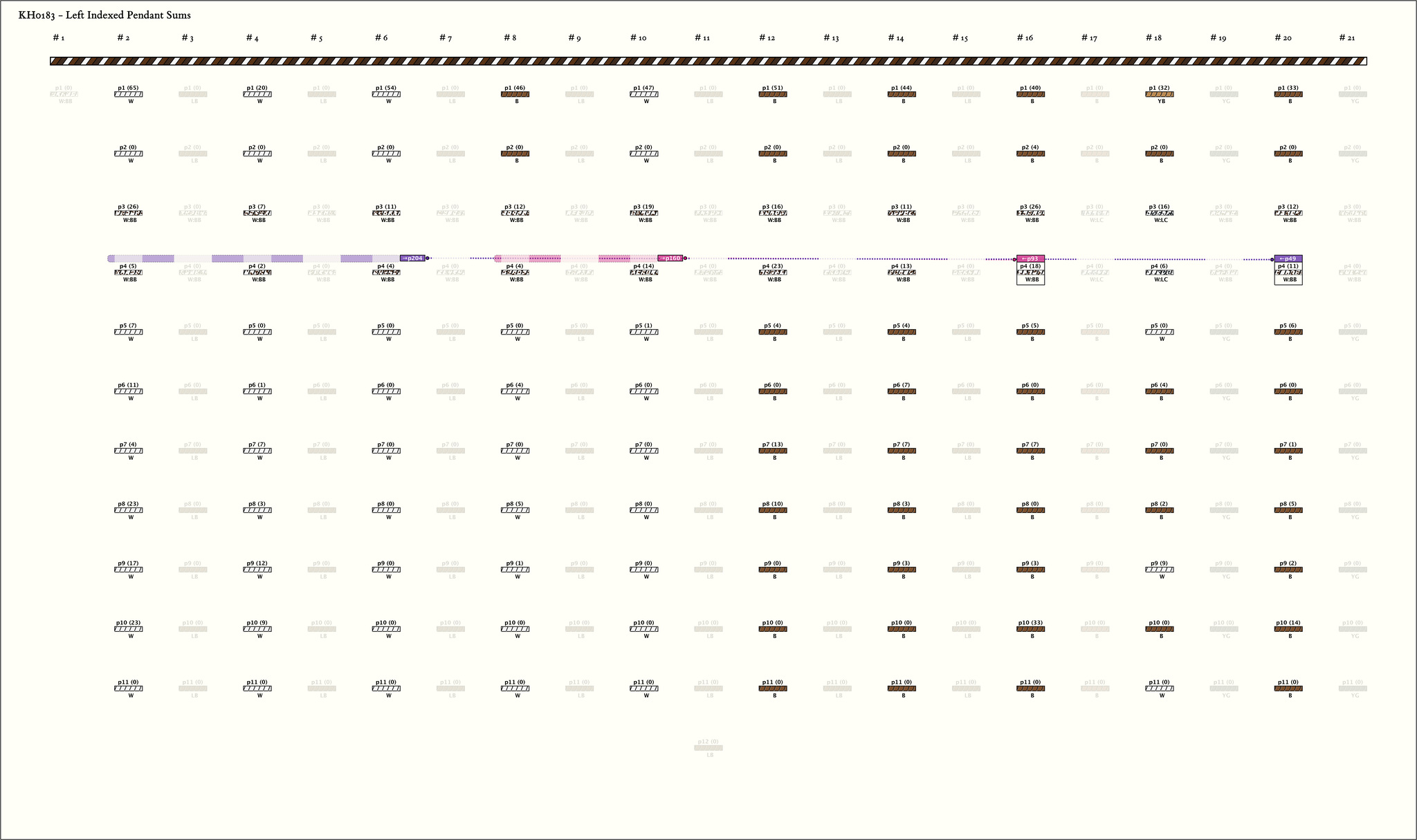 | 1 | ![]() | g2p1 : 65W | 65 | 2 | g18p1: 32YB + g20p1: 33B | |