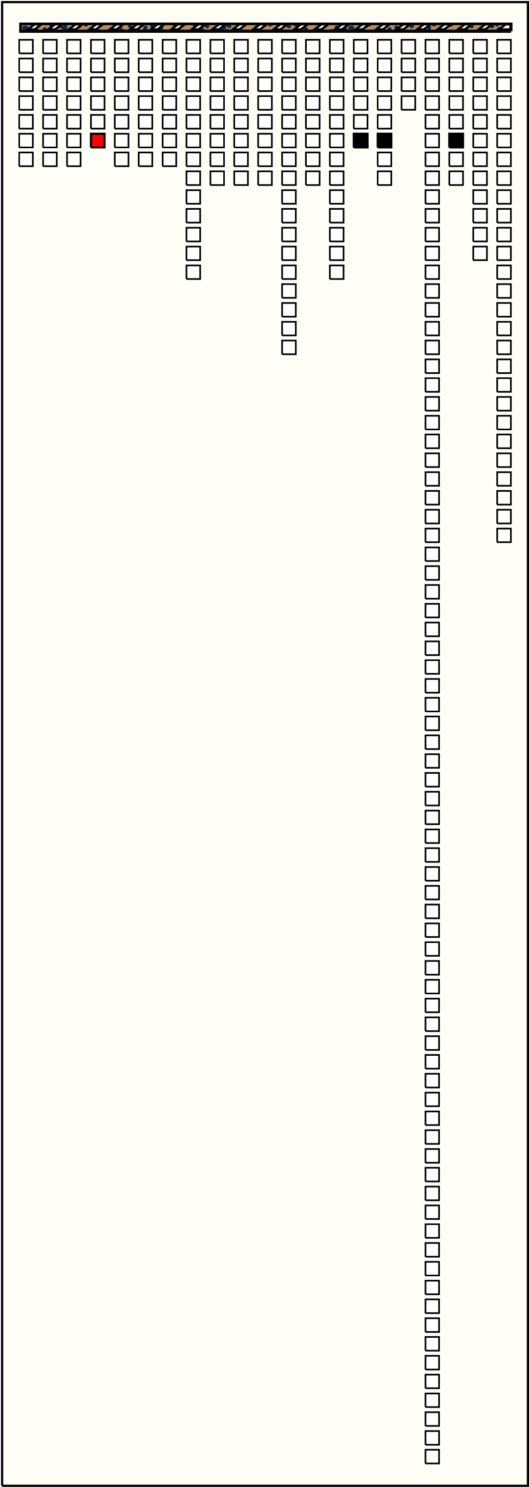 93: Color change from YB to PB occurs during last turn of 6L long knot (see photo)