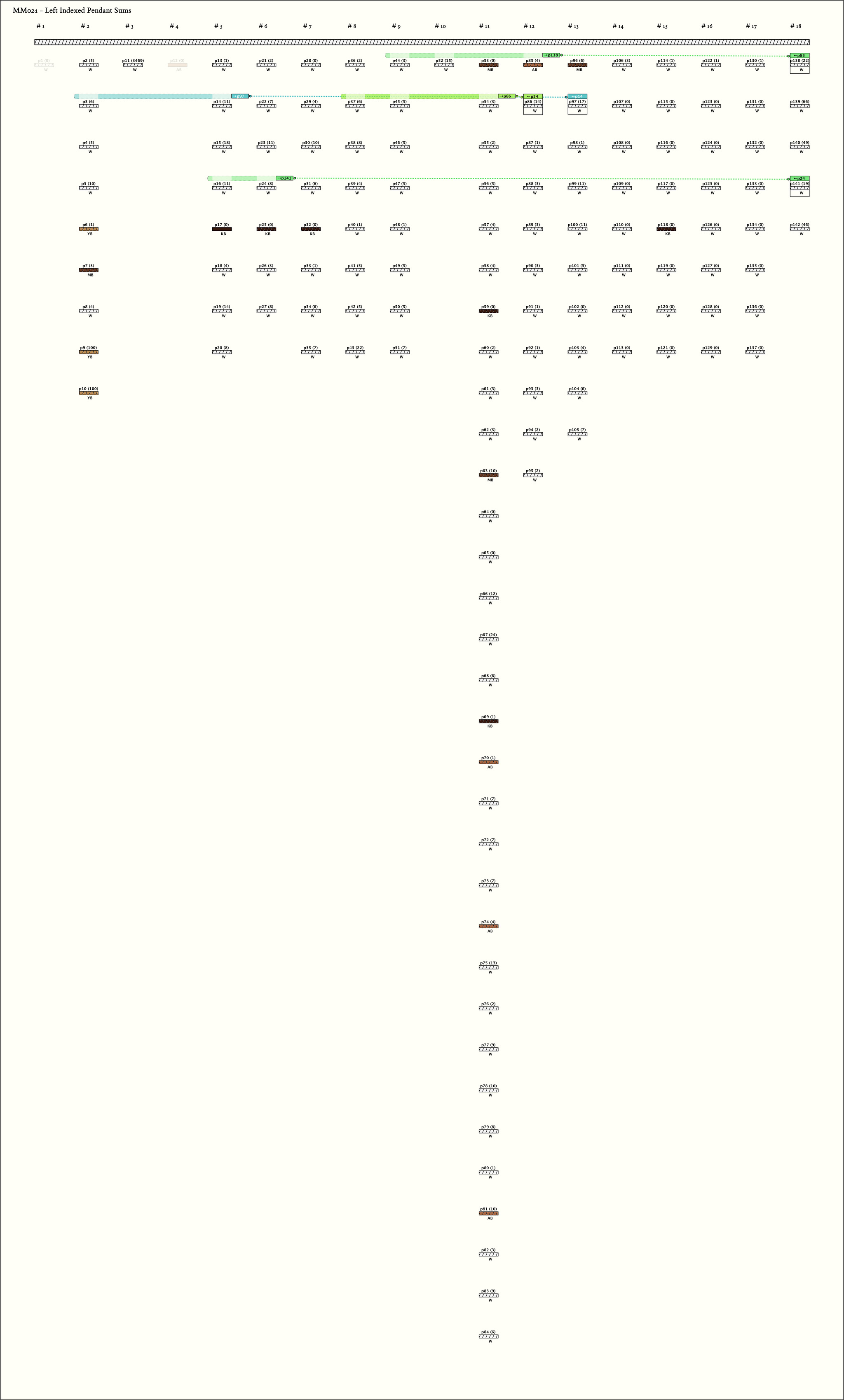 | # | Color | Sum Schema | Sum Cord | Sum Cord Value | # Summands | Summands |