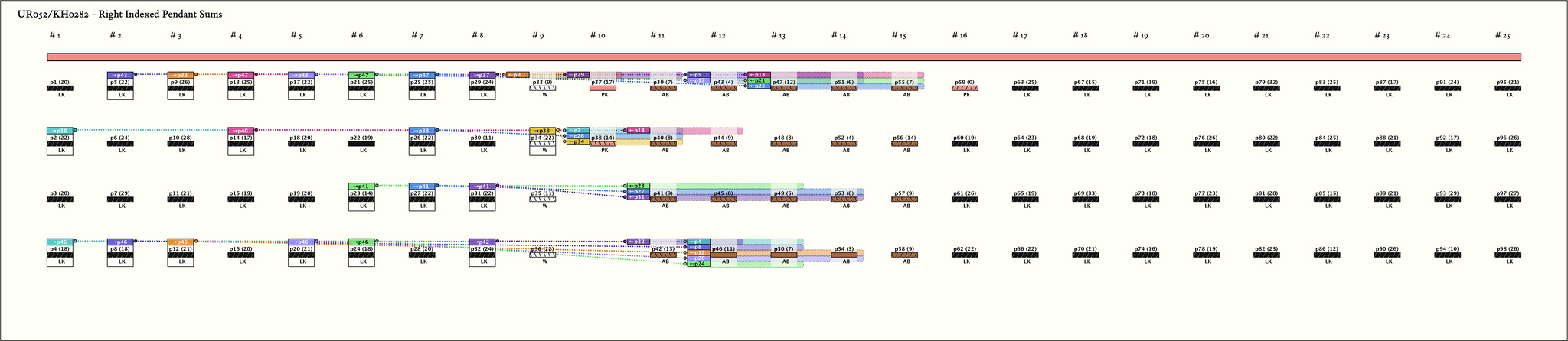 This khipu has been reconstructed using information from Jon Clindaniel's DASH thesis notes at Harvard. Cord cluster information is missing and has been defaulted to one cord per cluster.