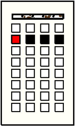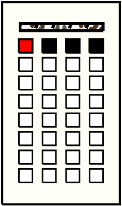 - The values in group 1 are the sums of the values of groups 2-4, position by position (with a discrepancy of 1 in the 4th position). The value on the subsidiary on position 3 in group 1 is also the sum of the values of the subsidiaries on position 3 in groups 2-4. Thus: