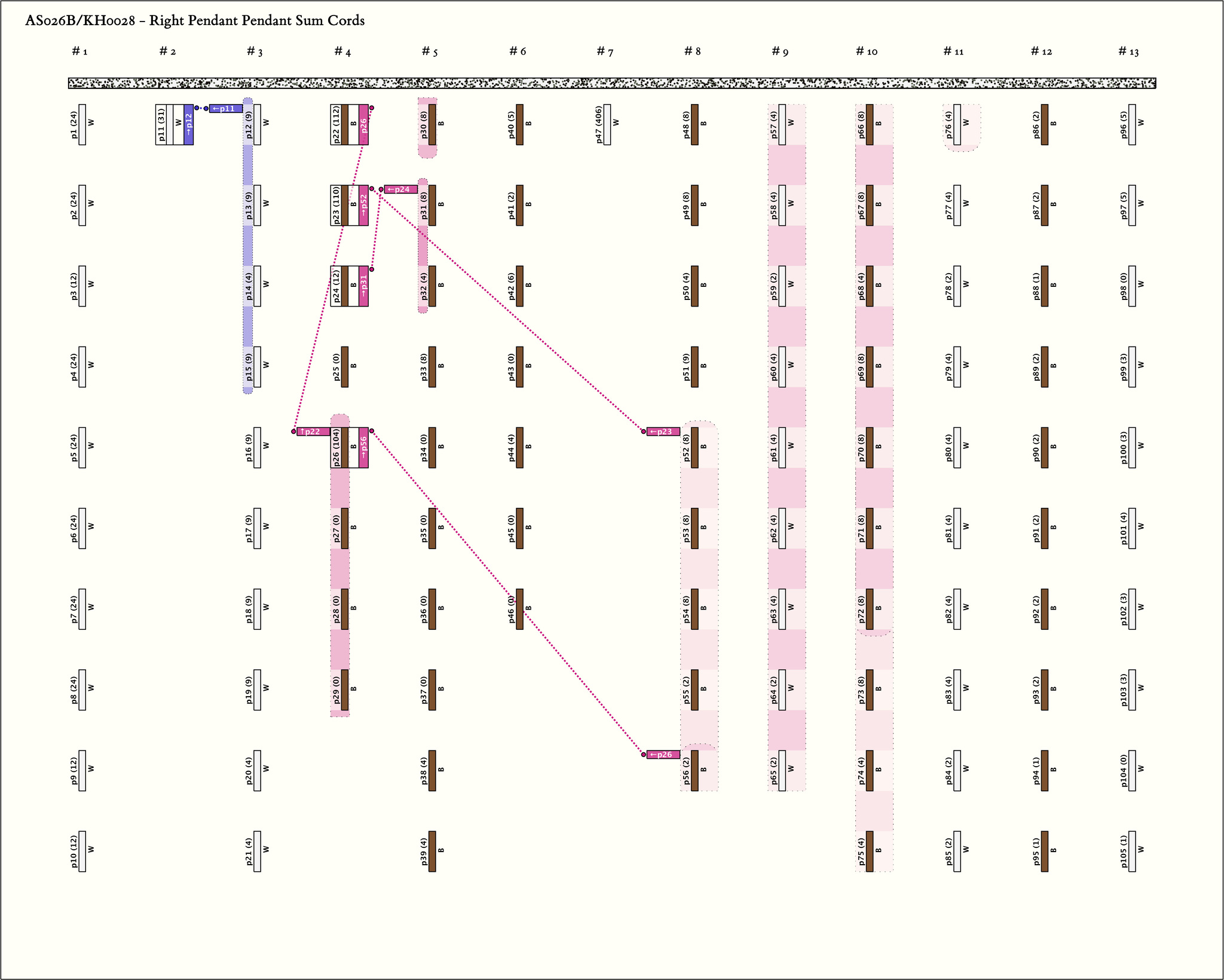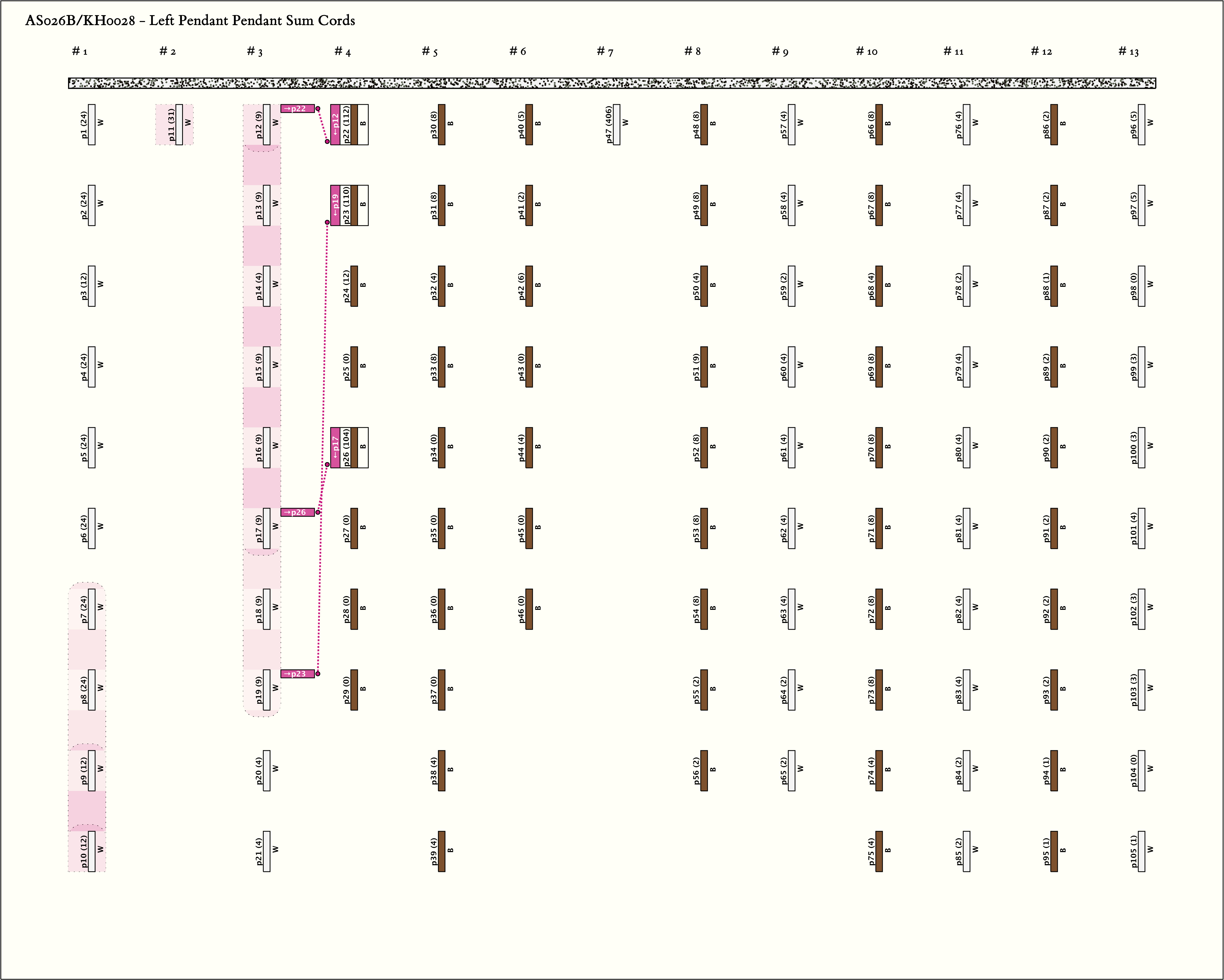 - Khipus AS026A and AS026B were joined. Their linkage and a comparison of their colors are detailed with AS026A.