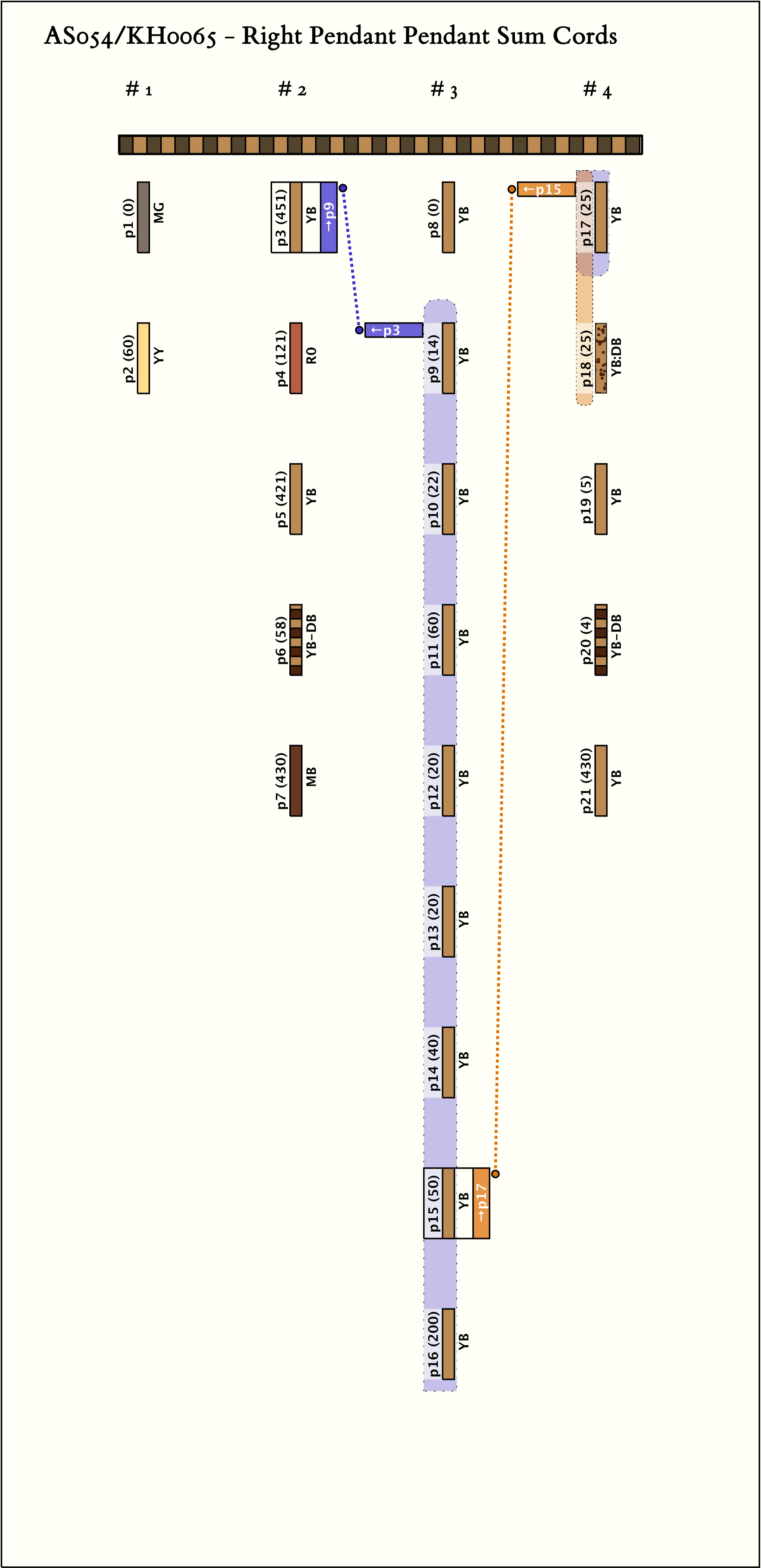 - Long knots appear only on 2 subsidiaries. On all other cords, only s knots are used. Values have, therefore, been interpreted depending on placement of knots with the assumption that the lowest position is units.