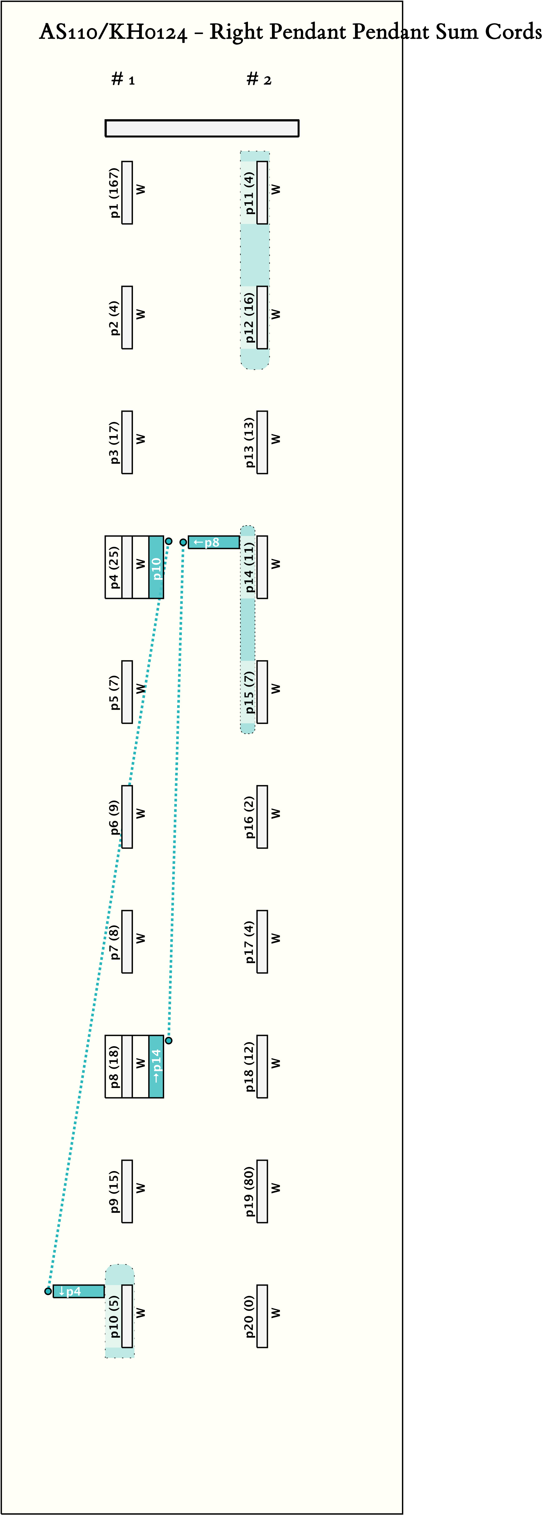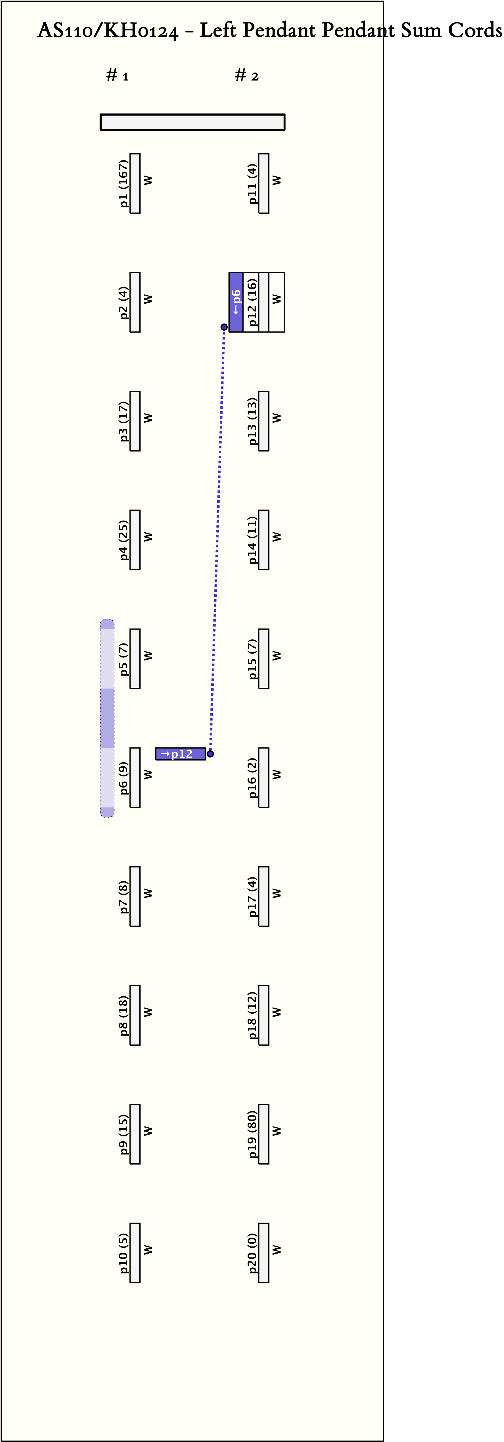 - AS110 and AS111 are designated by the same Museum number. Stored with them are 4 pendant blanks with colors KB: W/W, LB: W/W, KB:LB:W/W, and W, and 1 pendant fragment. The fragment is KB:W/W and has value 105.