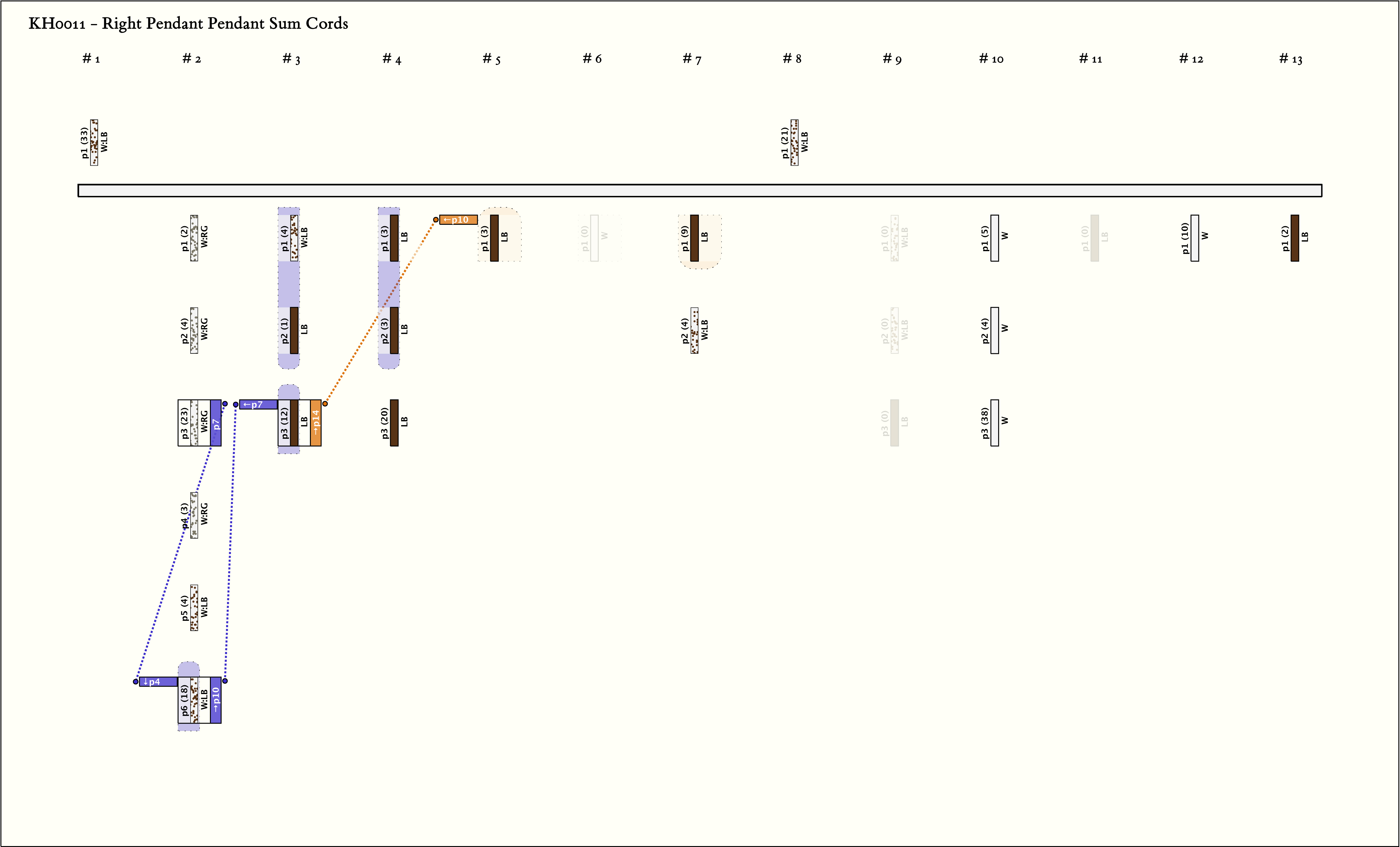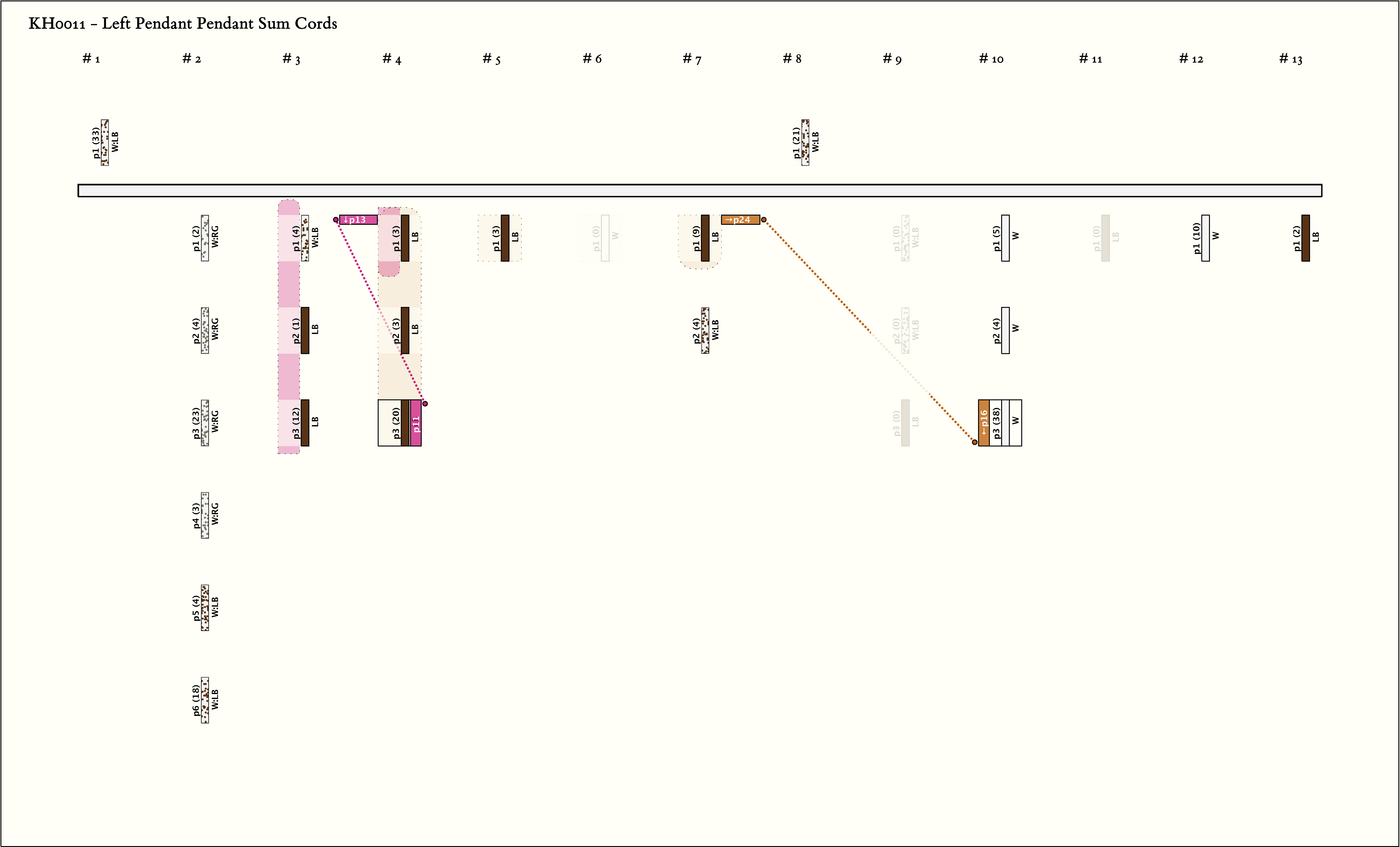 - The value of top cord P1 plus the value of its subsidiary P1s1 equals 51. The total value of the first 7 pendants is 51 (I could not replicate this conclusion - Ashok) and the total value of the next 7 pendants is 51. Ashok added: That is: