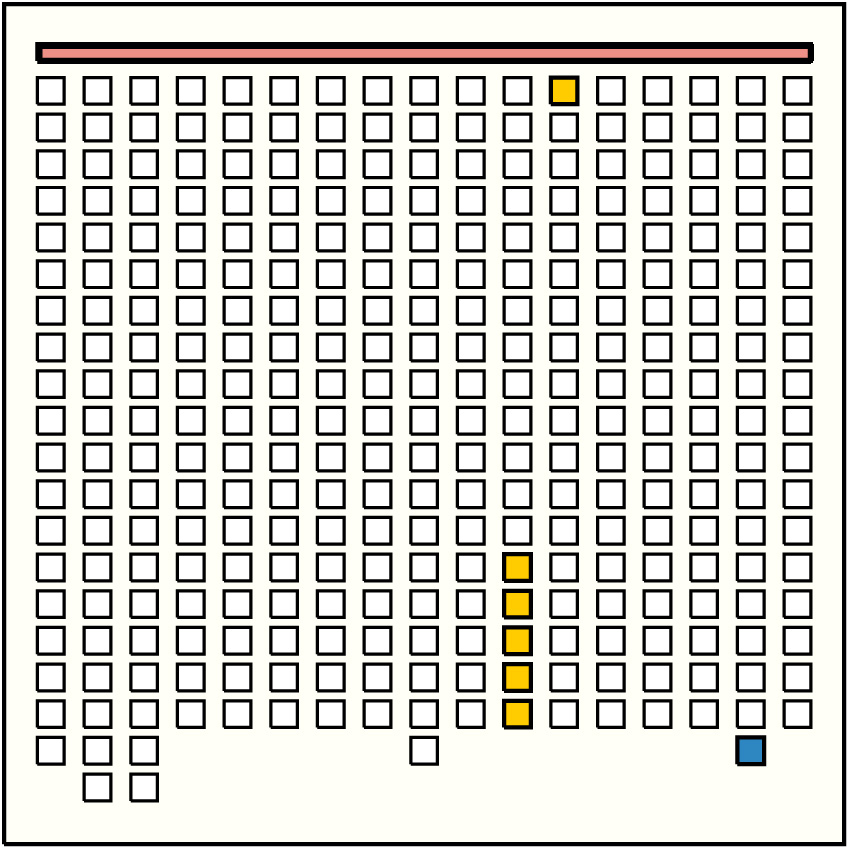 | 18 | ![]() | g7p3 : 231W:B | 231 | 14 | g14p3: 200W:B + g14p4: 0YB + g14p5: 0B + g14p6: 0B + g14p7: 0BG + g14p8: 10GY + g14p9: 0B + g14p10: 0B + g14p11: 0W + g14p12: 0W + g14p13: 0BD + g14p14: 11BD + g14p15: 0W-B + g14p16: 10B | |