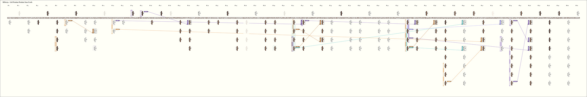 The first pendant of the 18th group (P92) is a different color than the rest of the group reinforcing the idea that this is a place where a change occurs. - All pendant cords within a group are the same color with the exception of group 18 noted above and groups 16, 20, and 23 in which the first 4 pendants are one color and the last 4 another color.