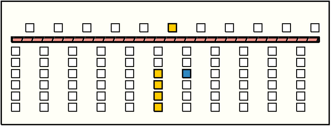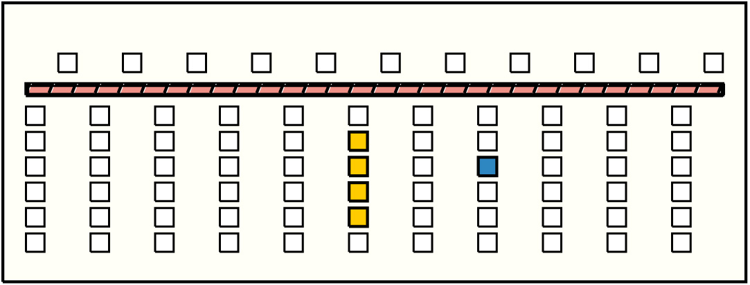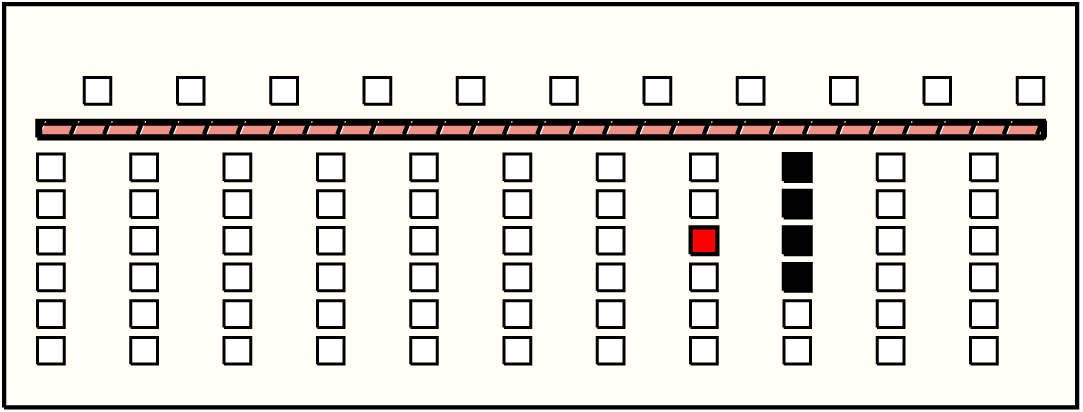 - Each group of 6 cords is separated from the next group by 1 cm;