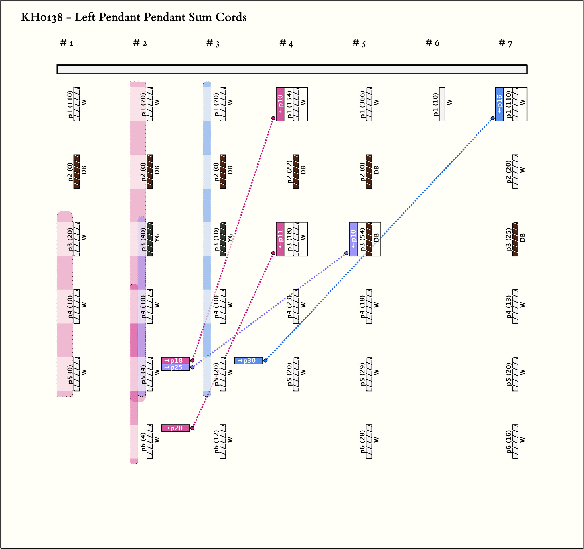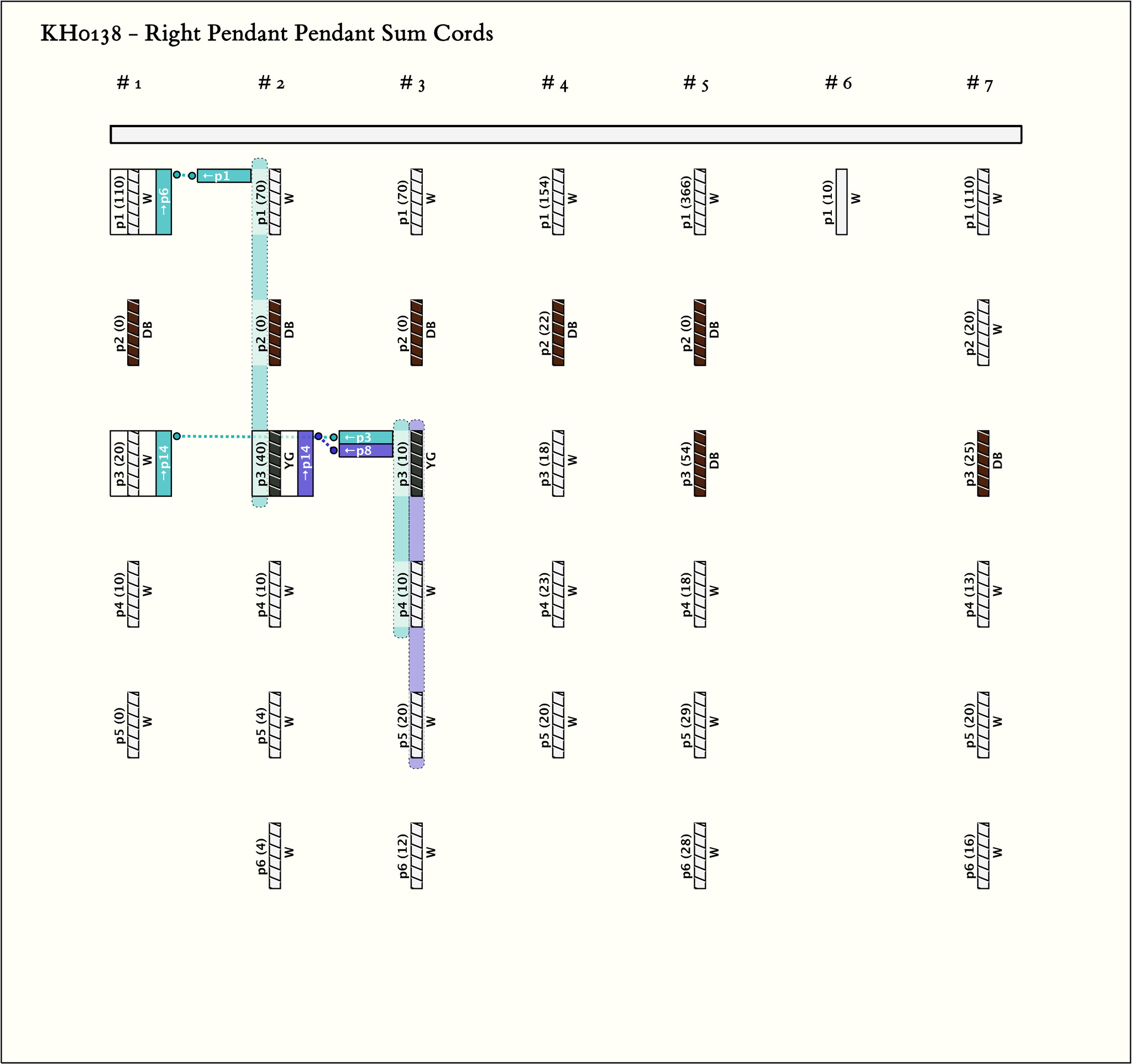 - Each group contains 5 or 6 pendants. In all groups, the first pendant and the last 3 pendants are W and, with the exception of the last group, the second pendant is DB.