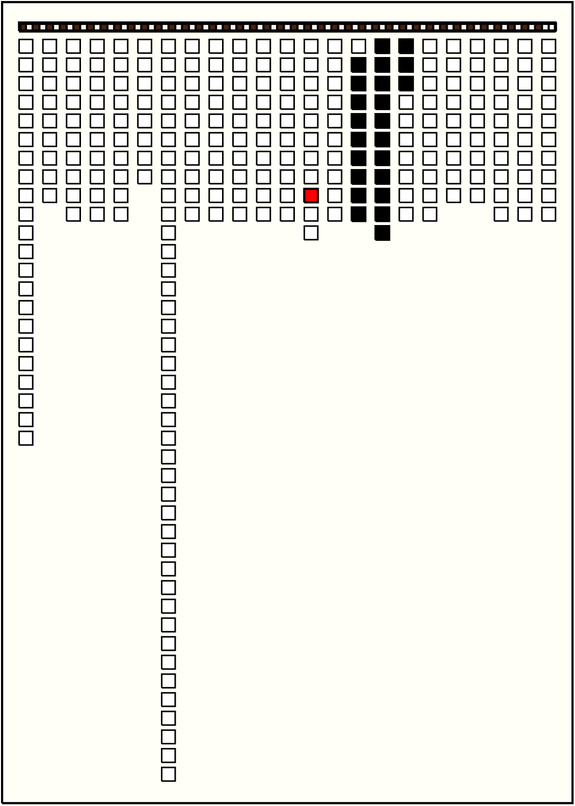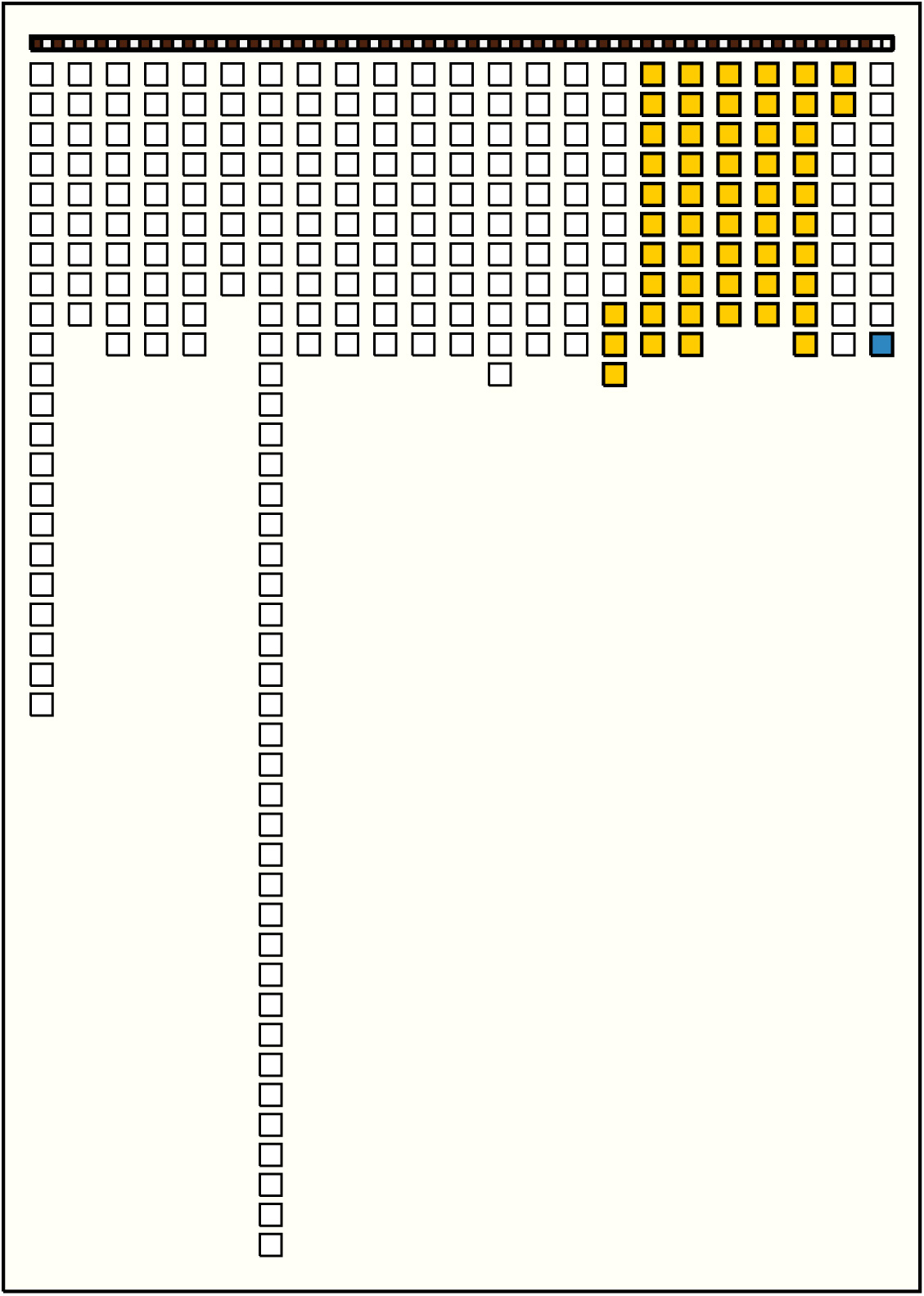 | 15 | ![]() | g13p11 : 70DB | 70 | 21 | g16p10: 6B:KB + g16p11: 0B:KB + g17p1: 3BS + g17p2: 3BS + g17p3: 3BS + g17p4: 4BS + g17p5: 4BS + g17p6: 4BS + g17p7: 4BS + g17p8: 7BS + g17p9: 3BS + g17p10: 0BS + g18p1: 3B + g18p2: 3B + g18p3: 4B + g18p4: 3B + g18p5: 3B + g18p6: 4B + g18p7: 3B + g18p8: 3B + g18p9: 3B | |