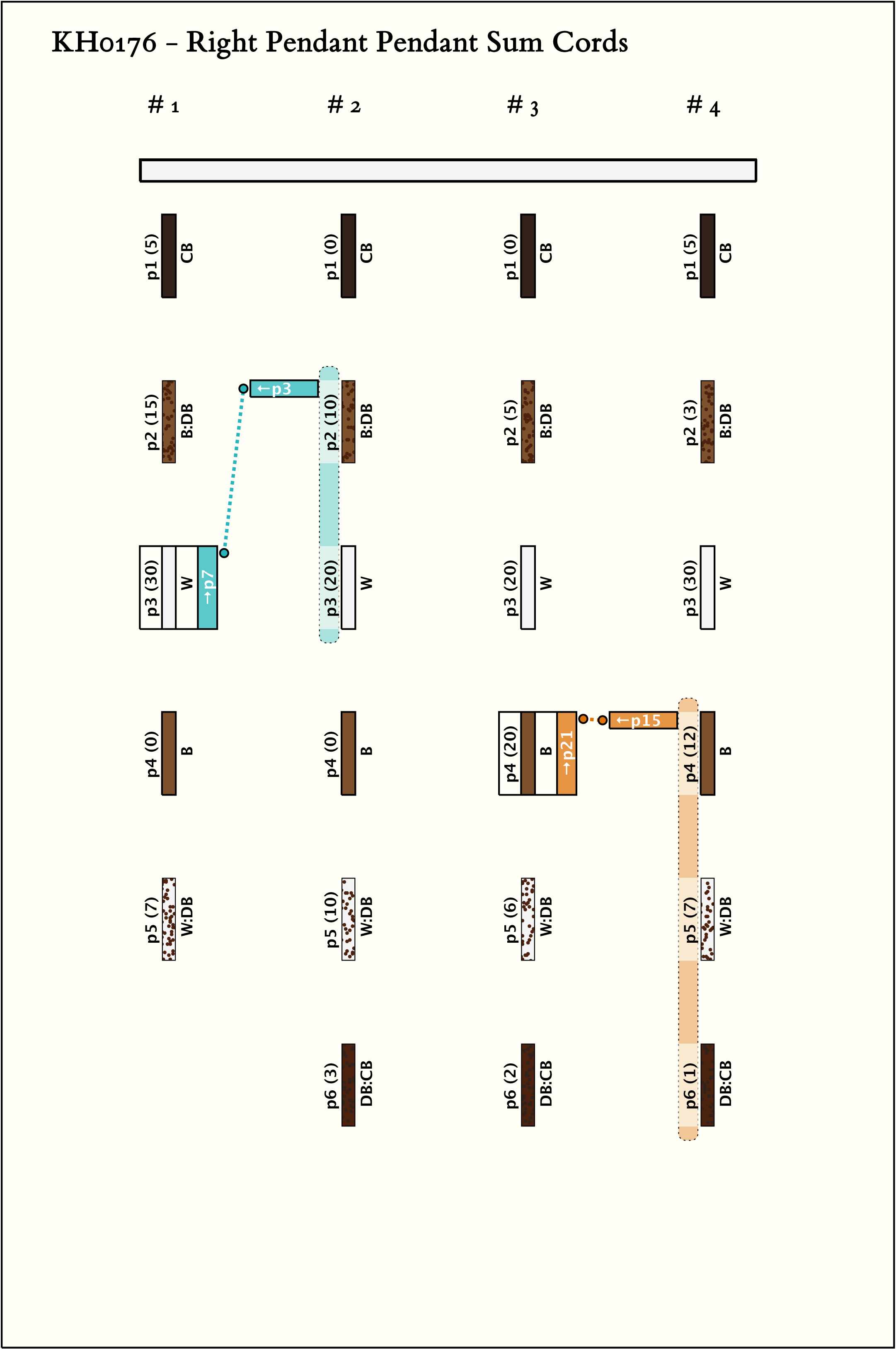 - Another pendant, just after pendant 5, was probably present as indicated by the discoloration on the main cord.