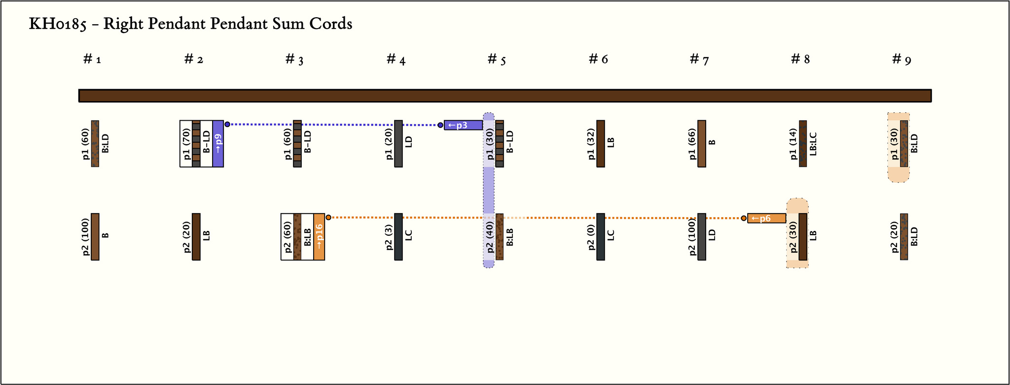 - By spacing, the khipu is separated into 9 pairs of pendants.