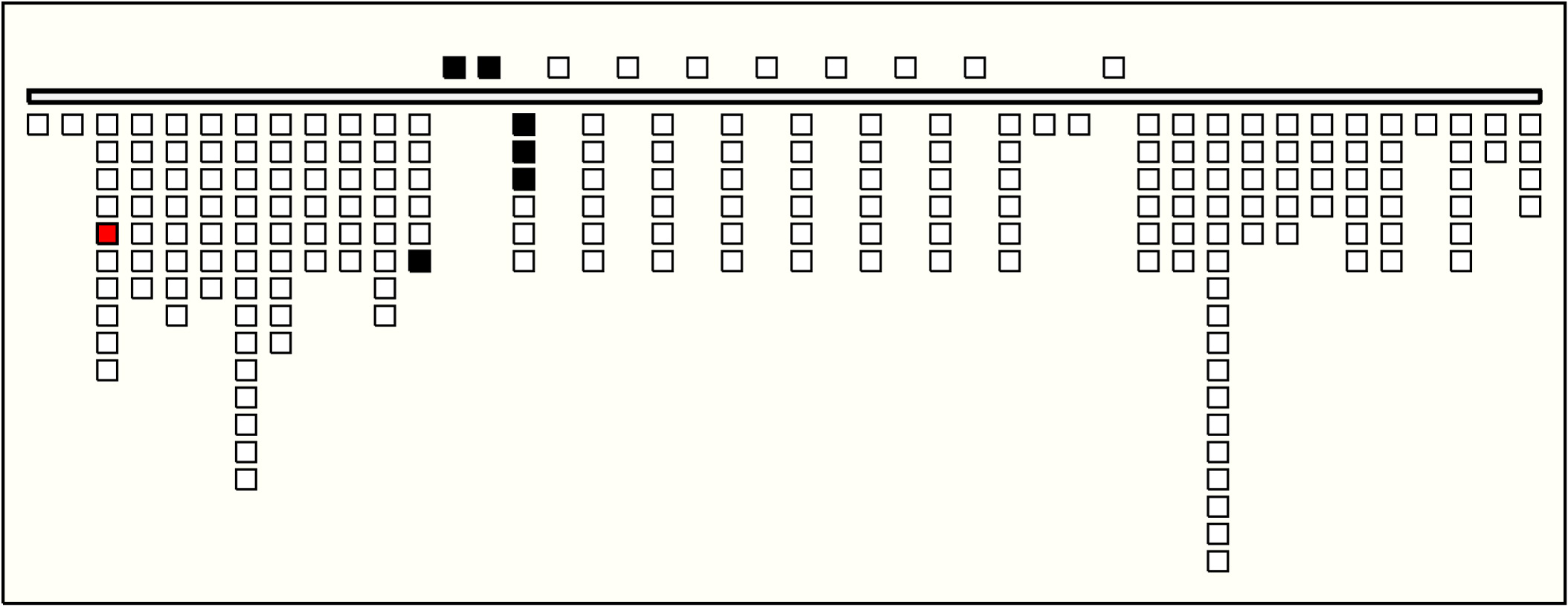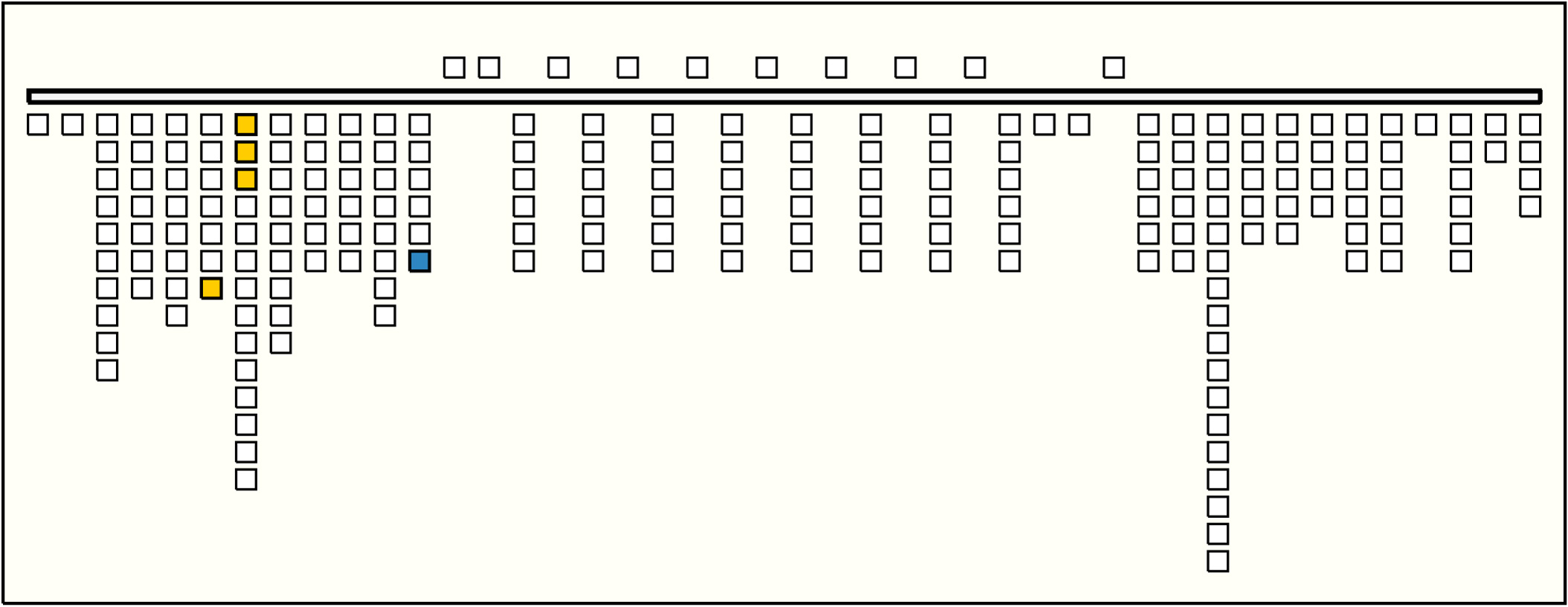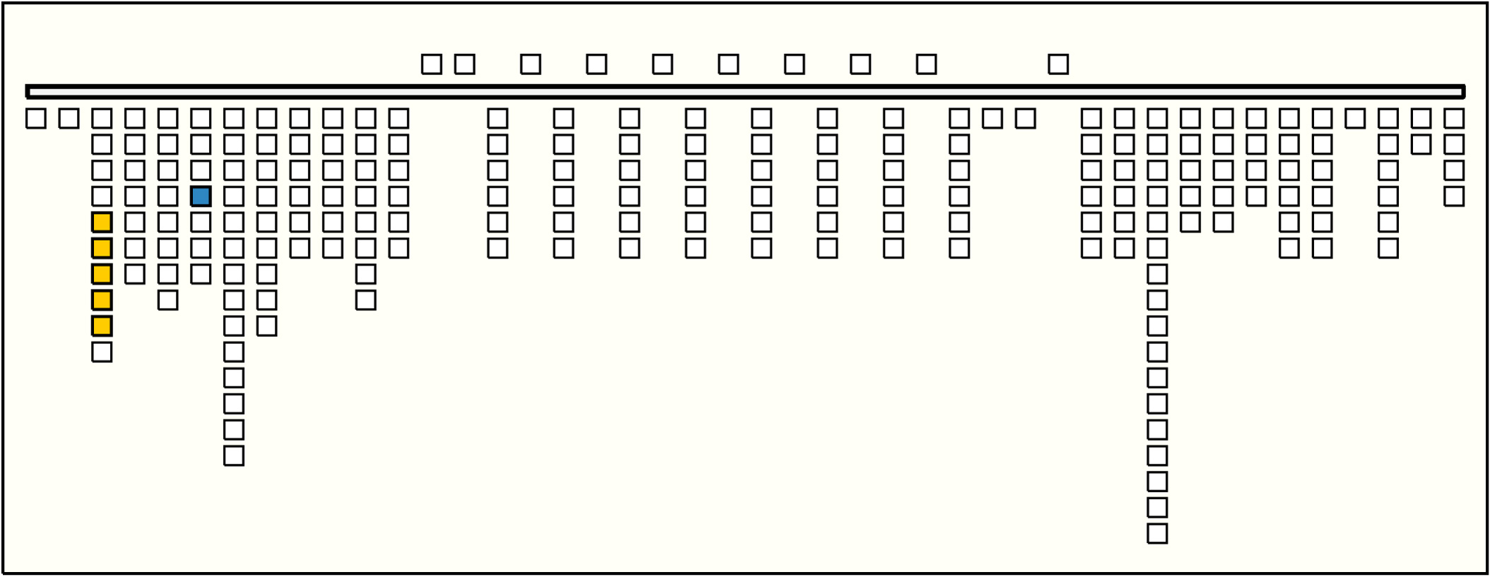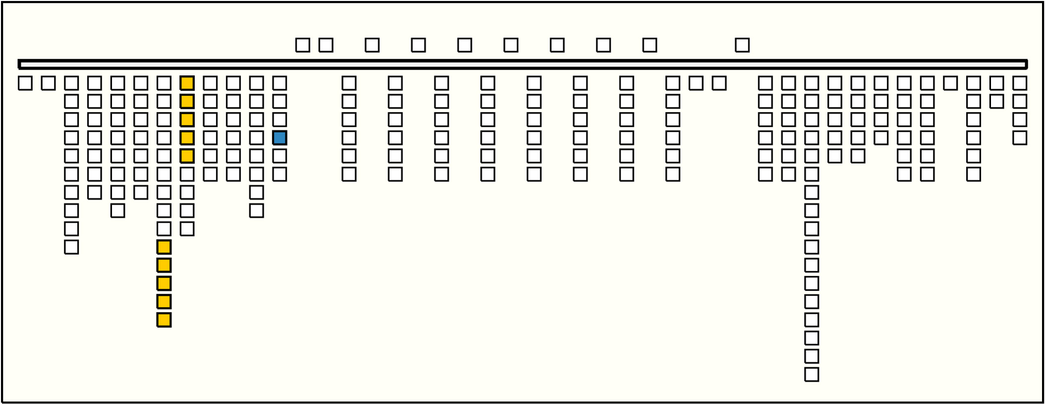 | 7 | ![]() | g12p4 : 79W:YB | 79 | 10 | g7p10: 7YB:MB + g7p11: 0YB:MB + g7p12: 0YB:MB + g7p13: 12YB:MB + g7p14: 10YB:MB + g8p1: 10MB:KB + g8p2: 10MB:KB + g8p3: 10MB:KB + g8p4: 10W:KB + g8p5: 10W:KB | |