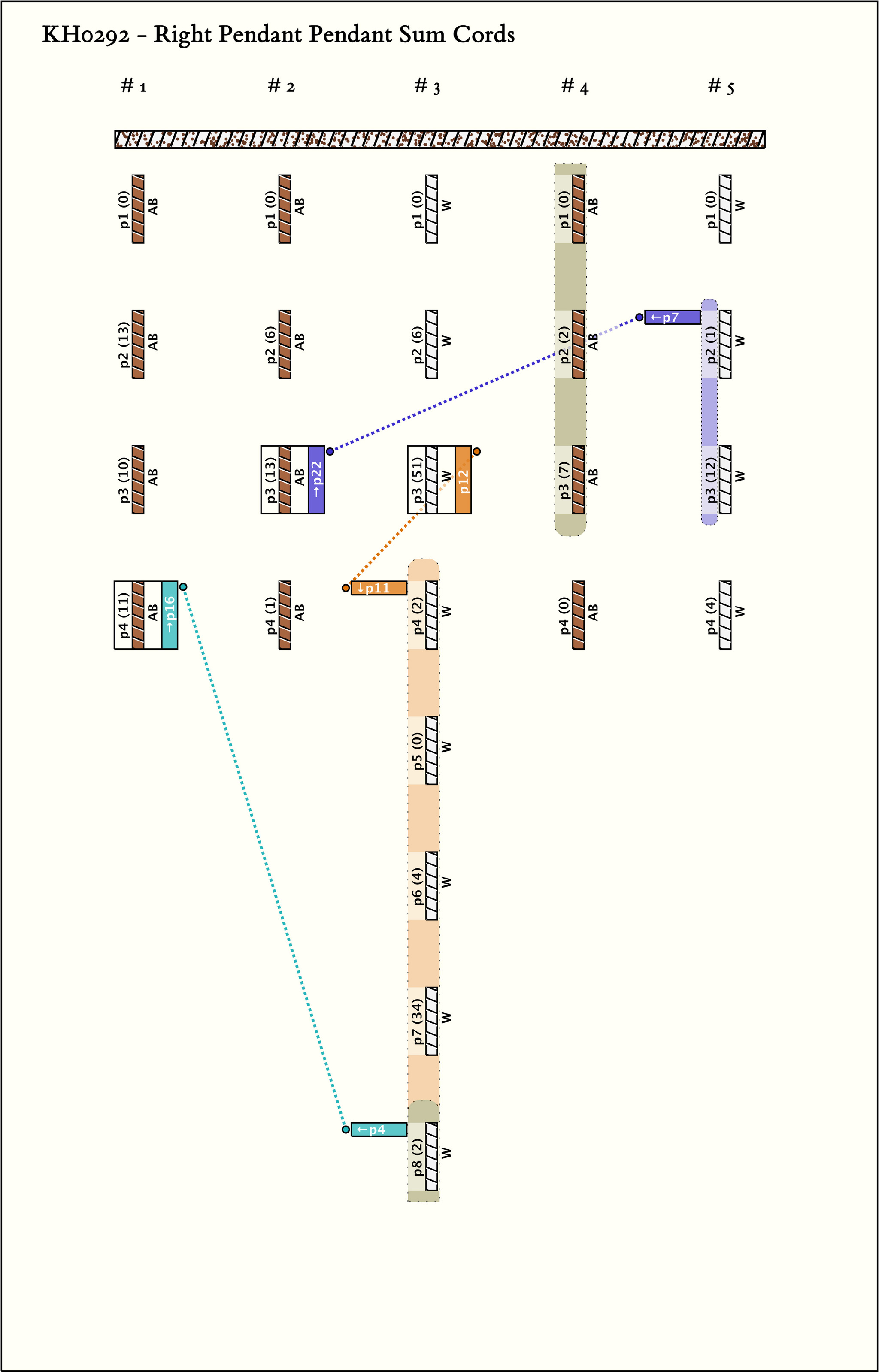 This khipu is being treated as three tied together: A, B, and C (see sketch in notes).