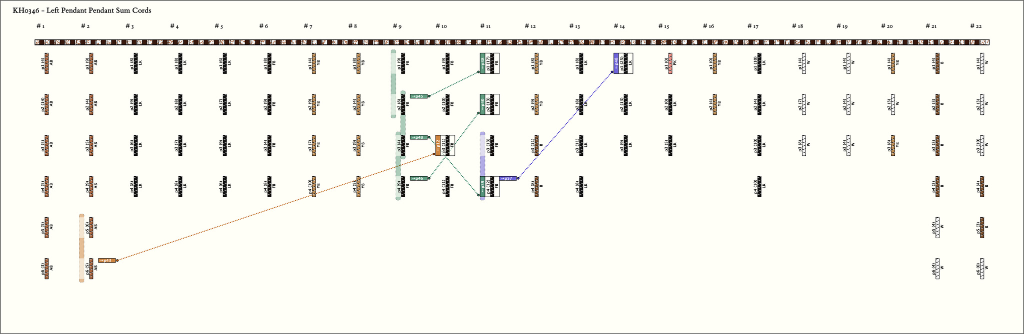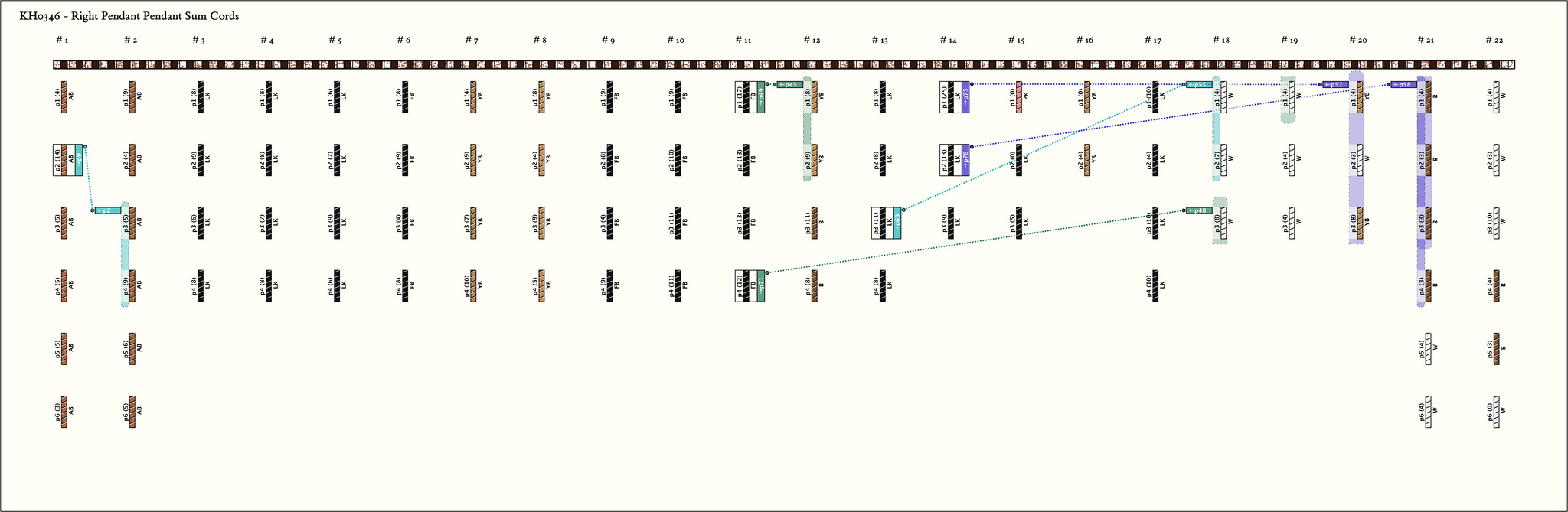 This khipu has been reconstructed using information from Jon Clindaniel's DASH thesis notes at Harvard. Cord cluster information is missing and has been defaulted to one cord per cluster.