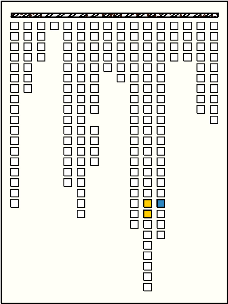 | 12 | ![]() | g12p17 : 200W-BG | 200 | 15 | g10p16: 4KB + g10p17: 5YB + g10p18: 1W + g10p19: 40W + g10p20: 10YB + g11p1: 14YB + g11p2: 14YB + g11p3: 14YB + g11p4: 14YB + g11p5: 14YB + g11p6: 14YB + g11p7: 14YB + g11p8: 14YB + g11p9: 14YB + g11p10: 14BG | |