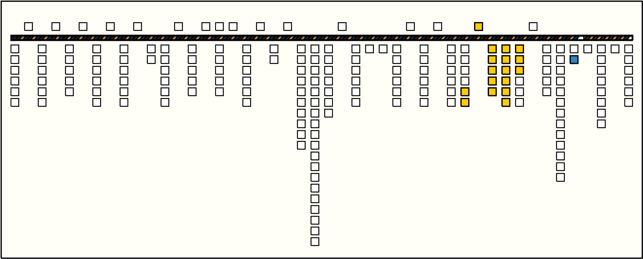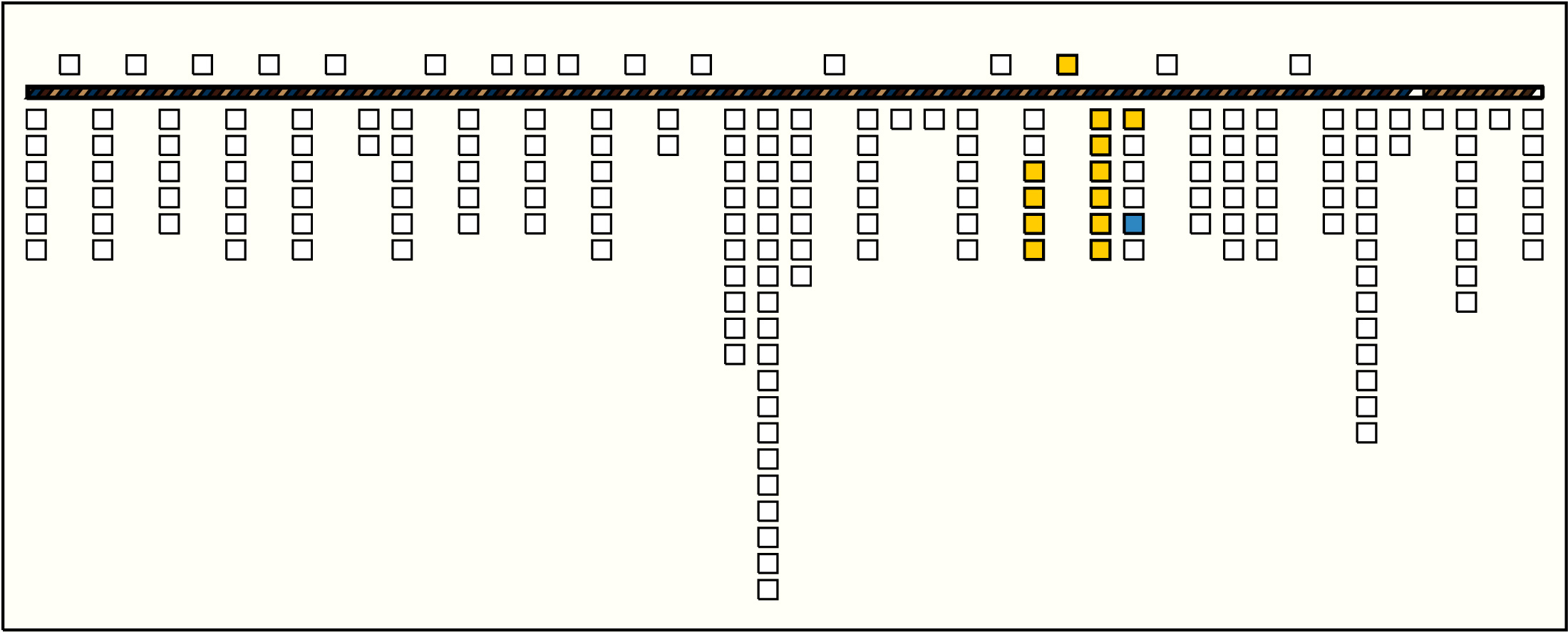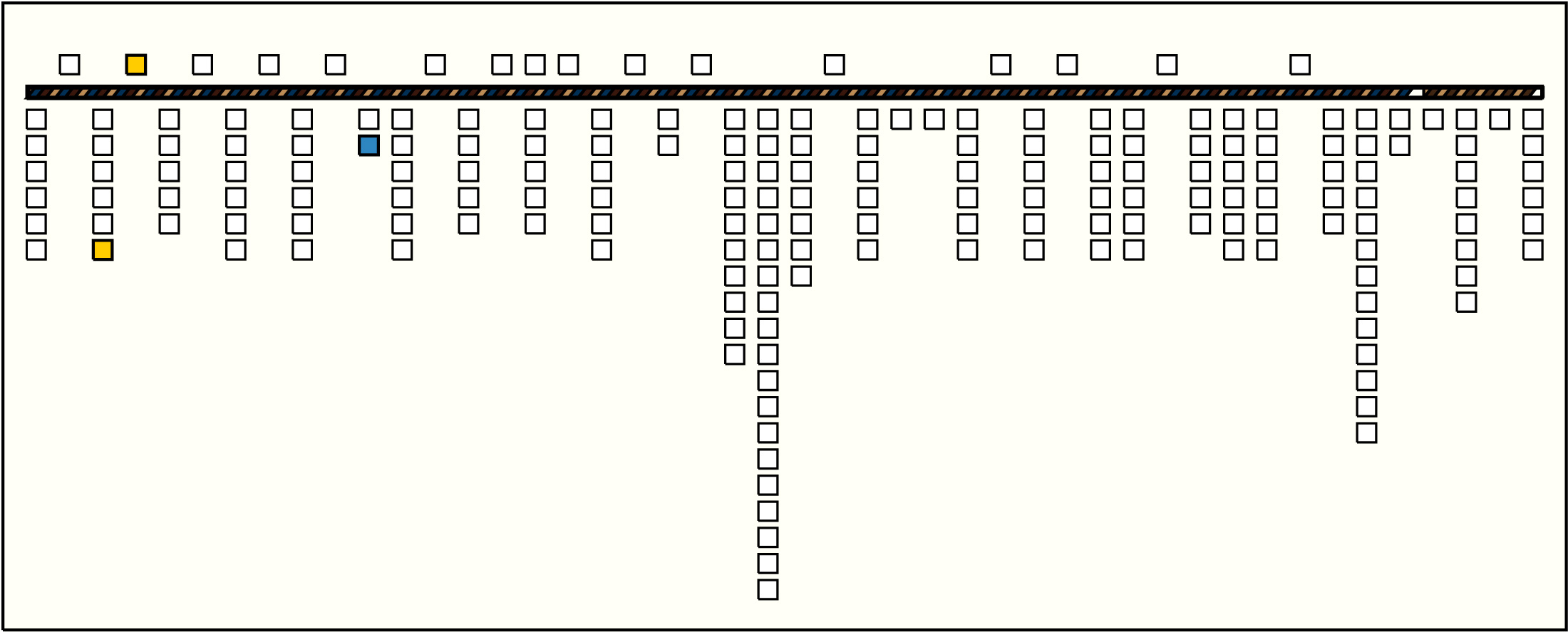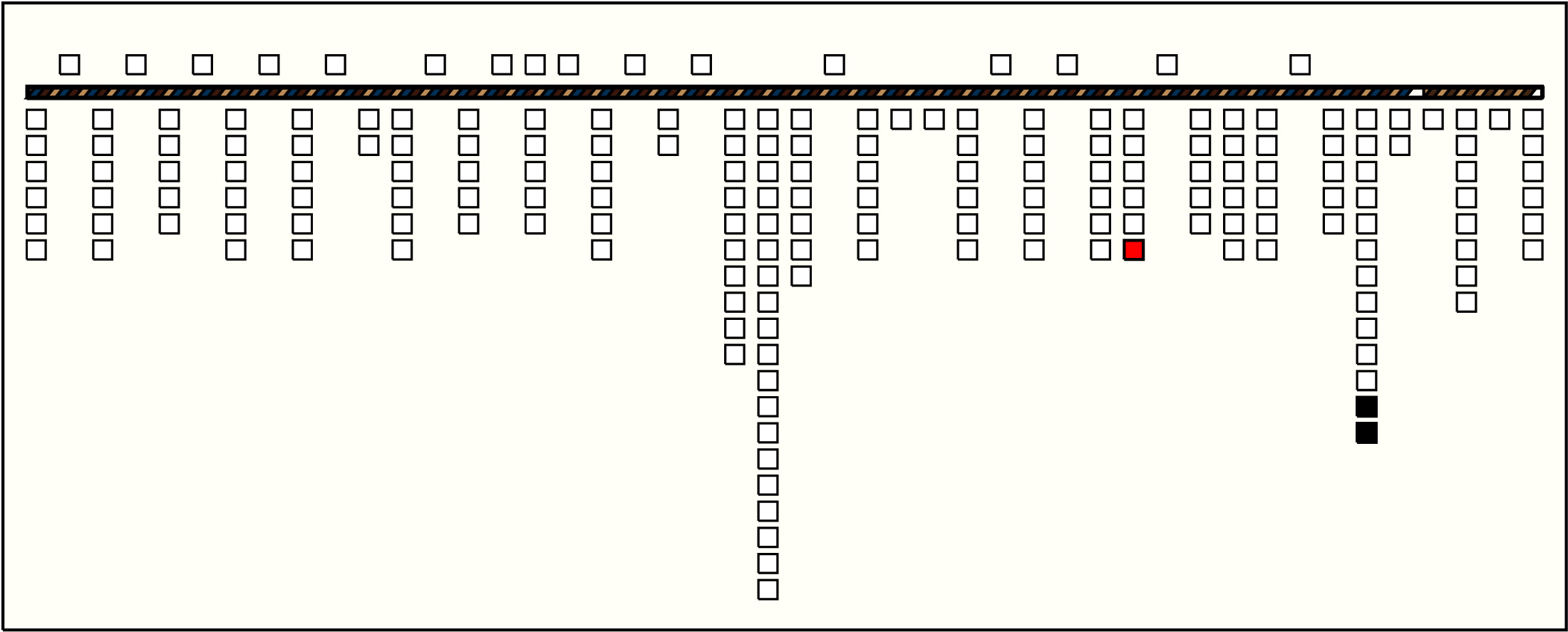 | 18 | ![]() | g27p1 : 100BS | 100 | 12 | g24p4: 4YB:BS + g24p5: 0YB:BS + g24p6: 0YB:BS + g24p7: 0YB:BS + g25p1: 0YB + g25p2: 0YB + g25p3: 0YB + g25p4: 0YB + g25p5: 0YB + g26p1: 6YB + g26p2: 0MB + g26p3: 90MB | |