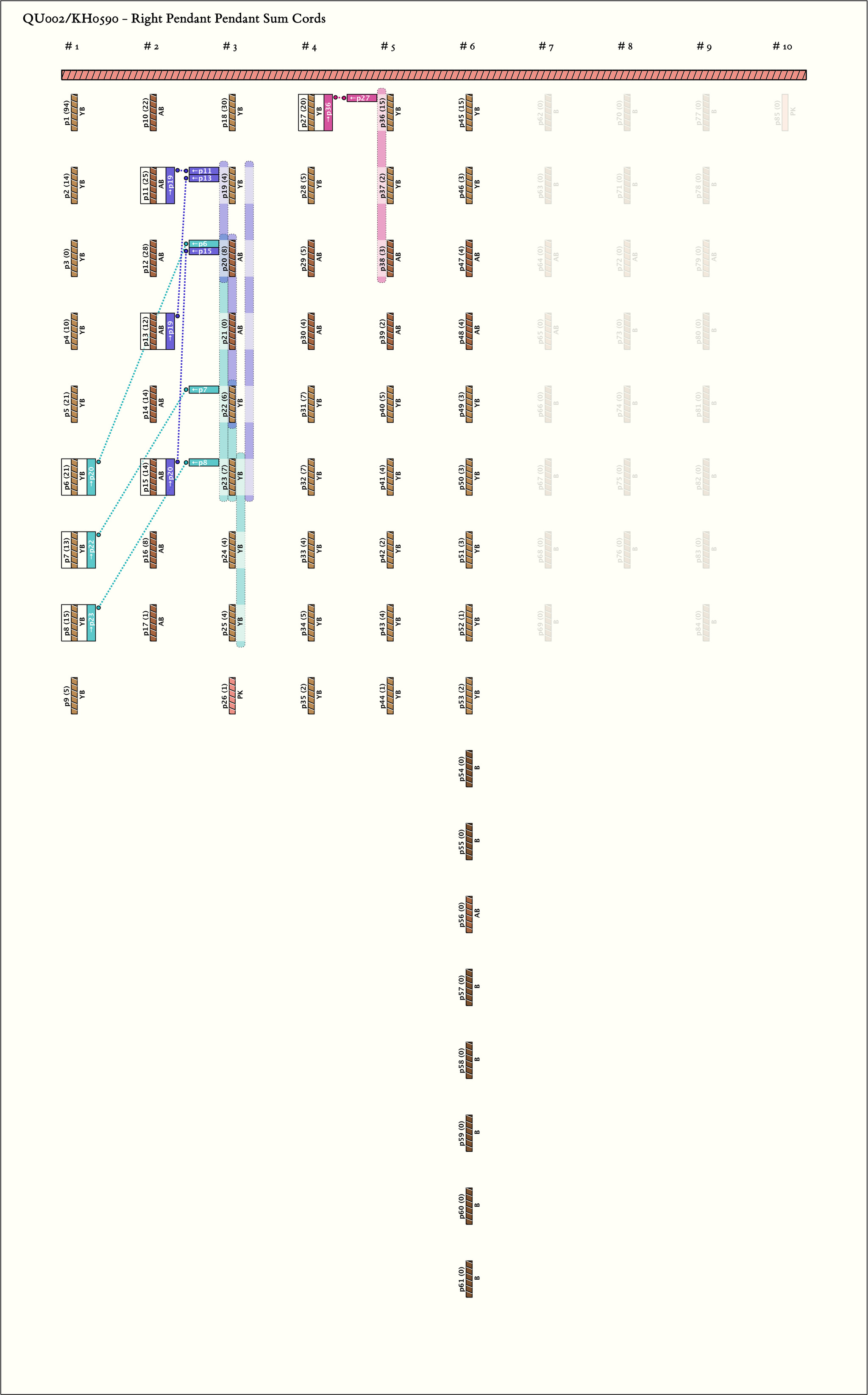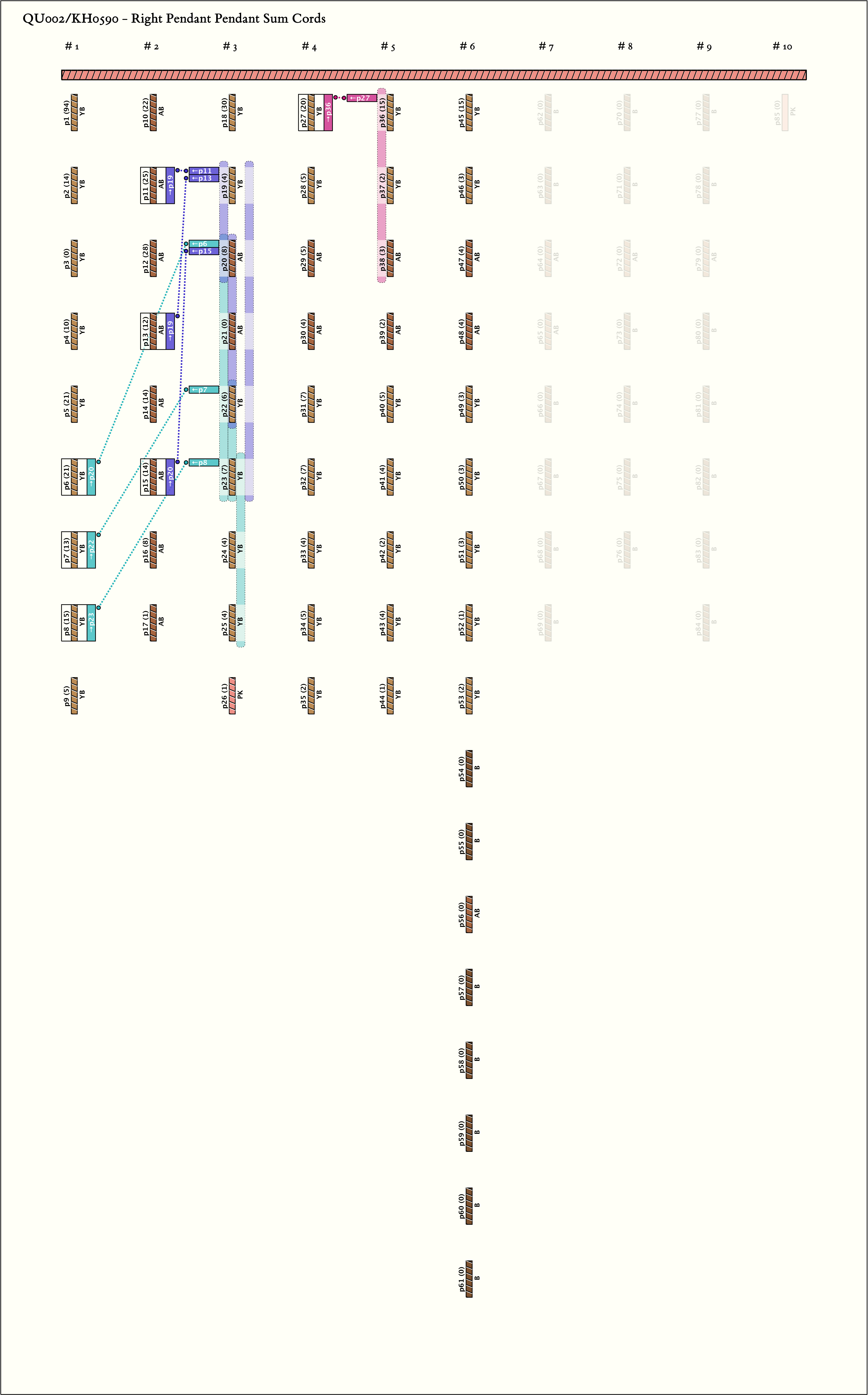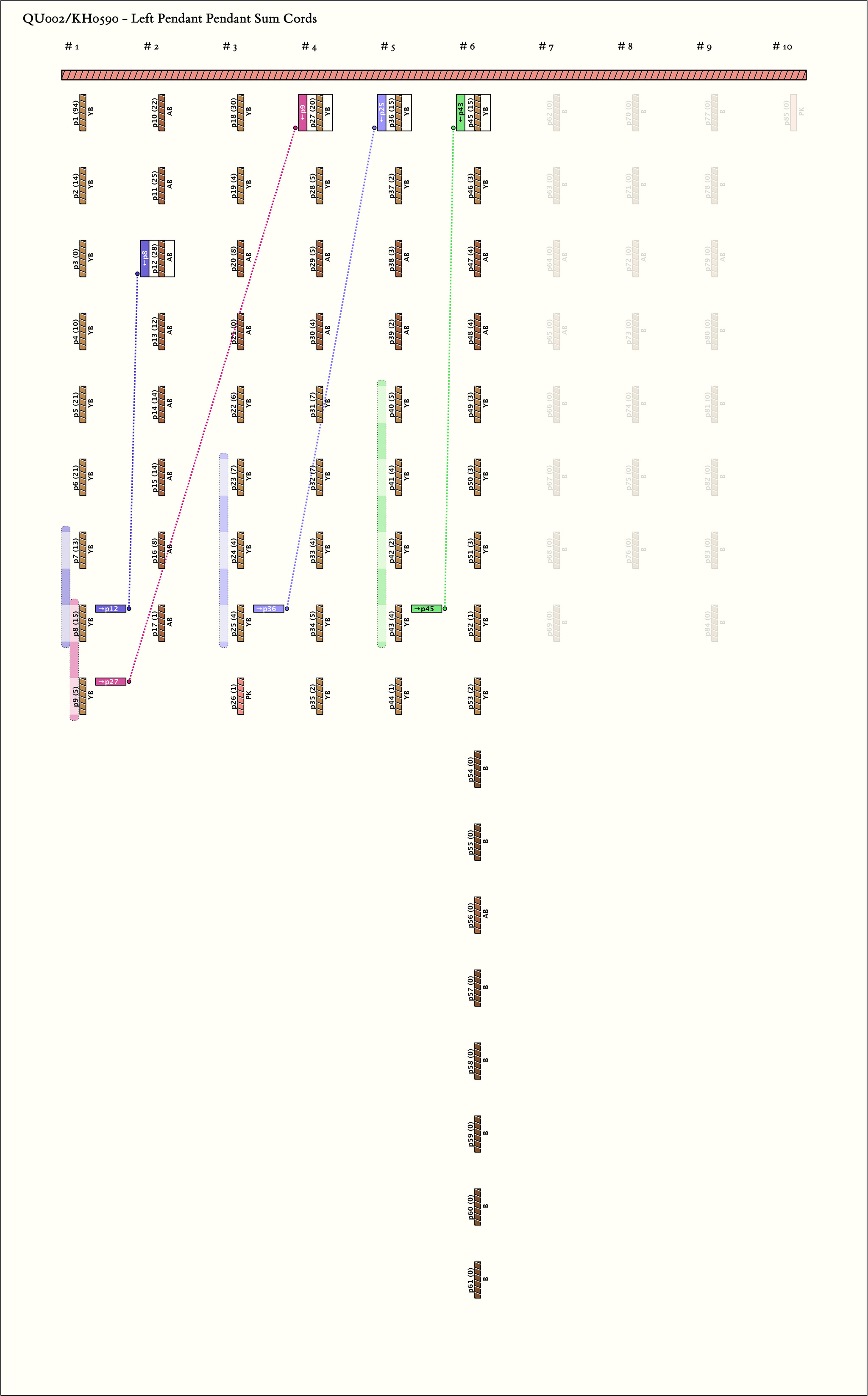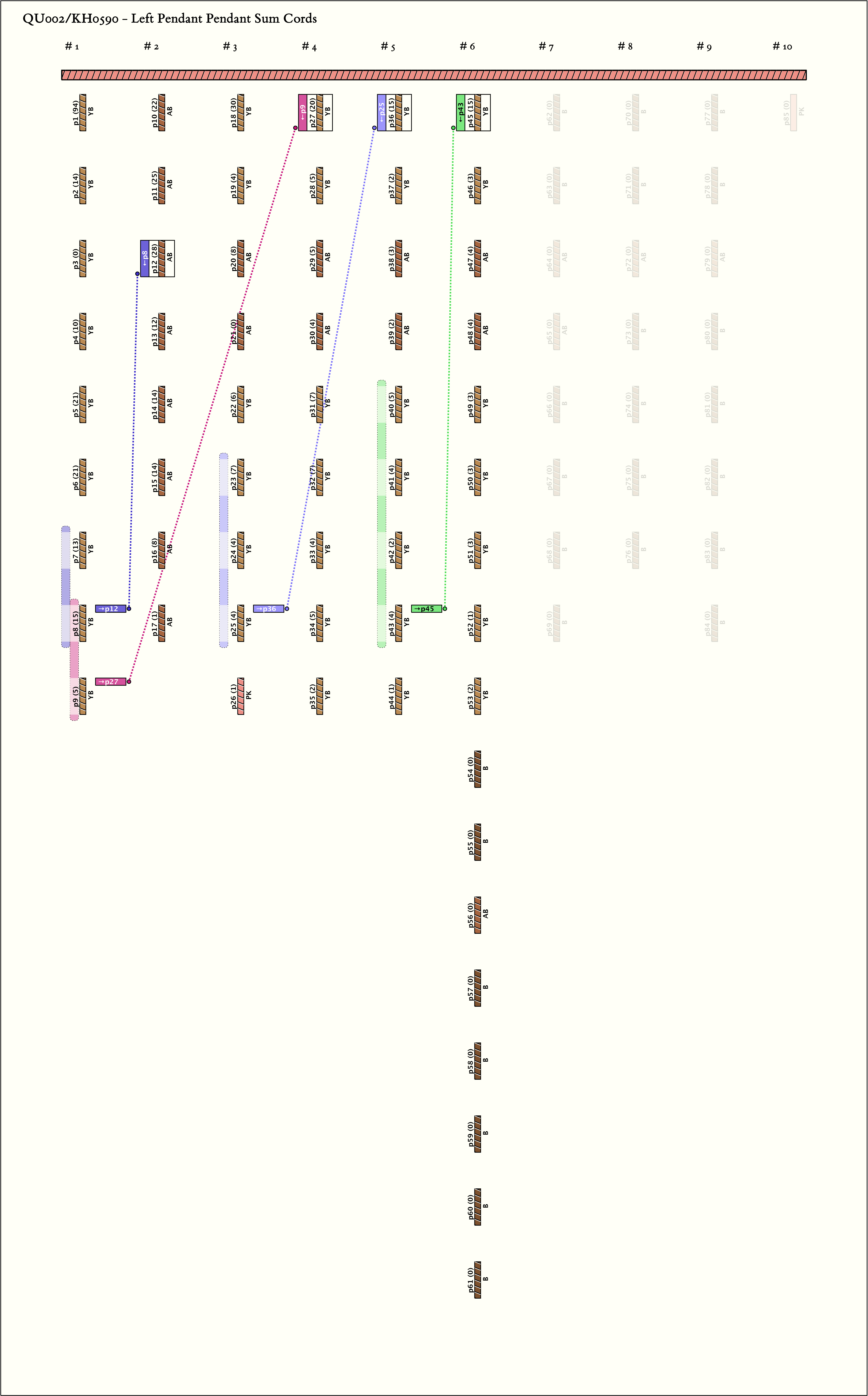 Beginning with Pendant 73, the cords seem to be in a position where they would not hang below main cord but rather "stand" like a top cord.
