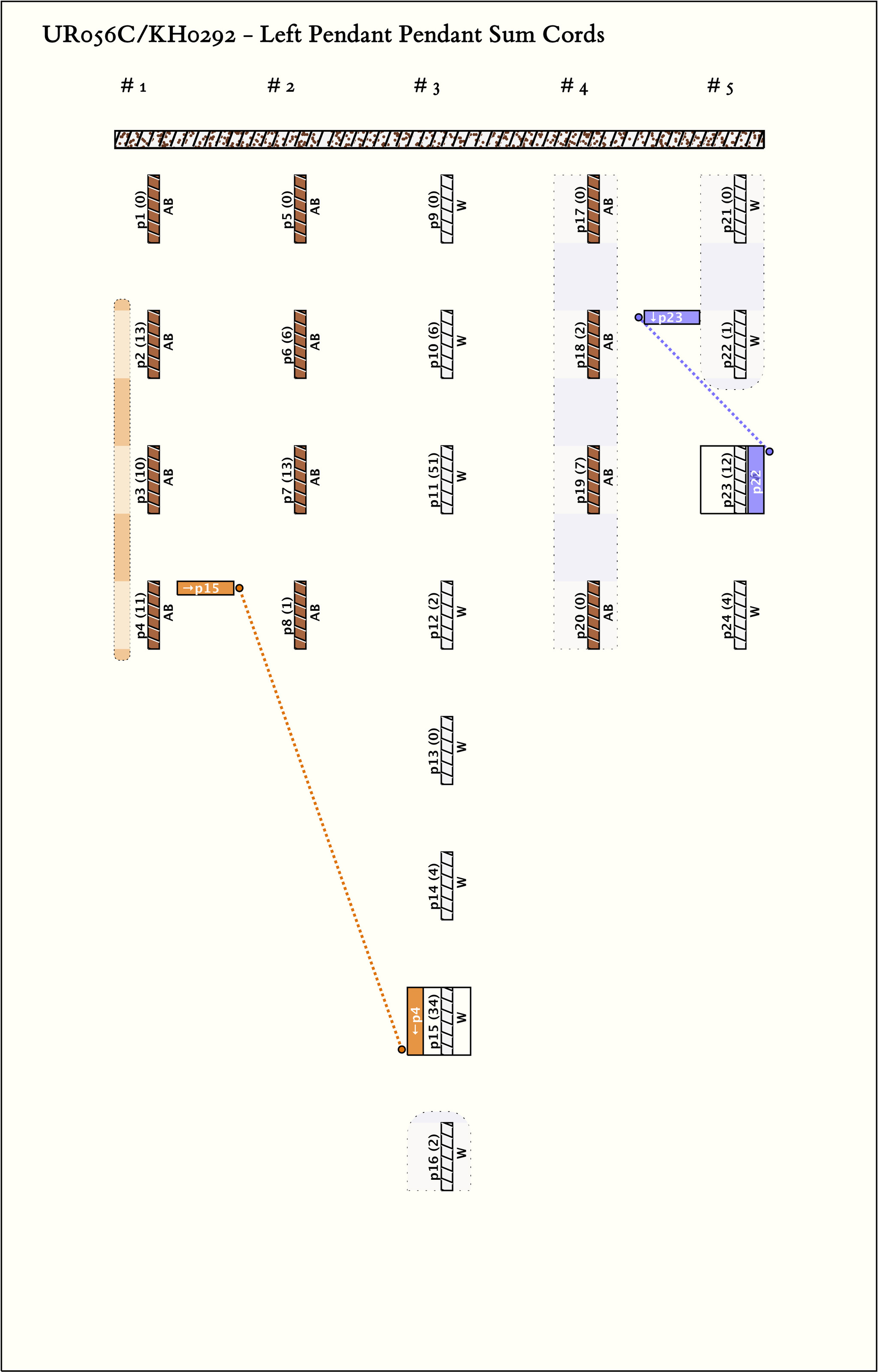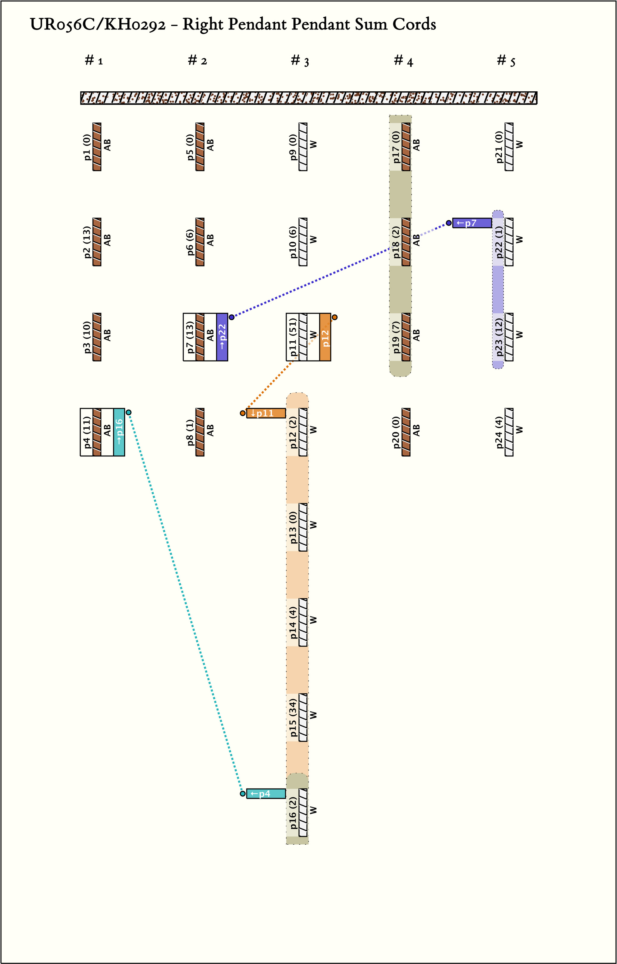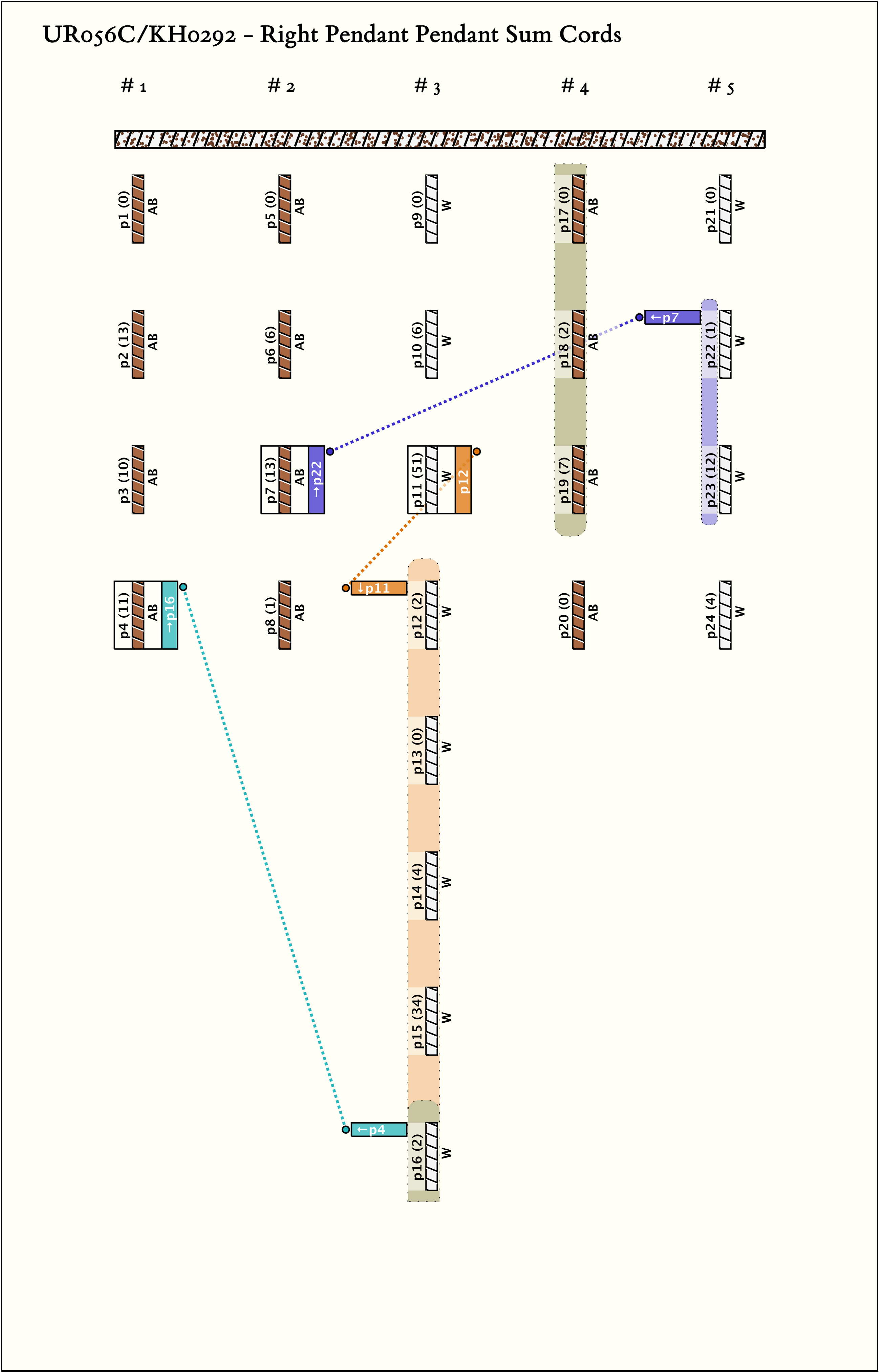 This khipu is being treated as three tied together: A, B, and C (see sketch in notes).