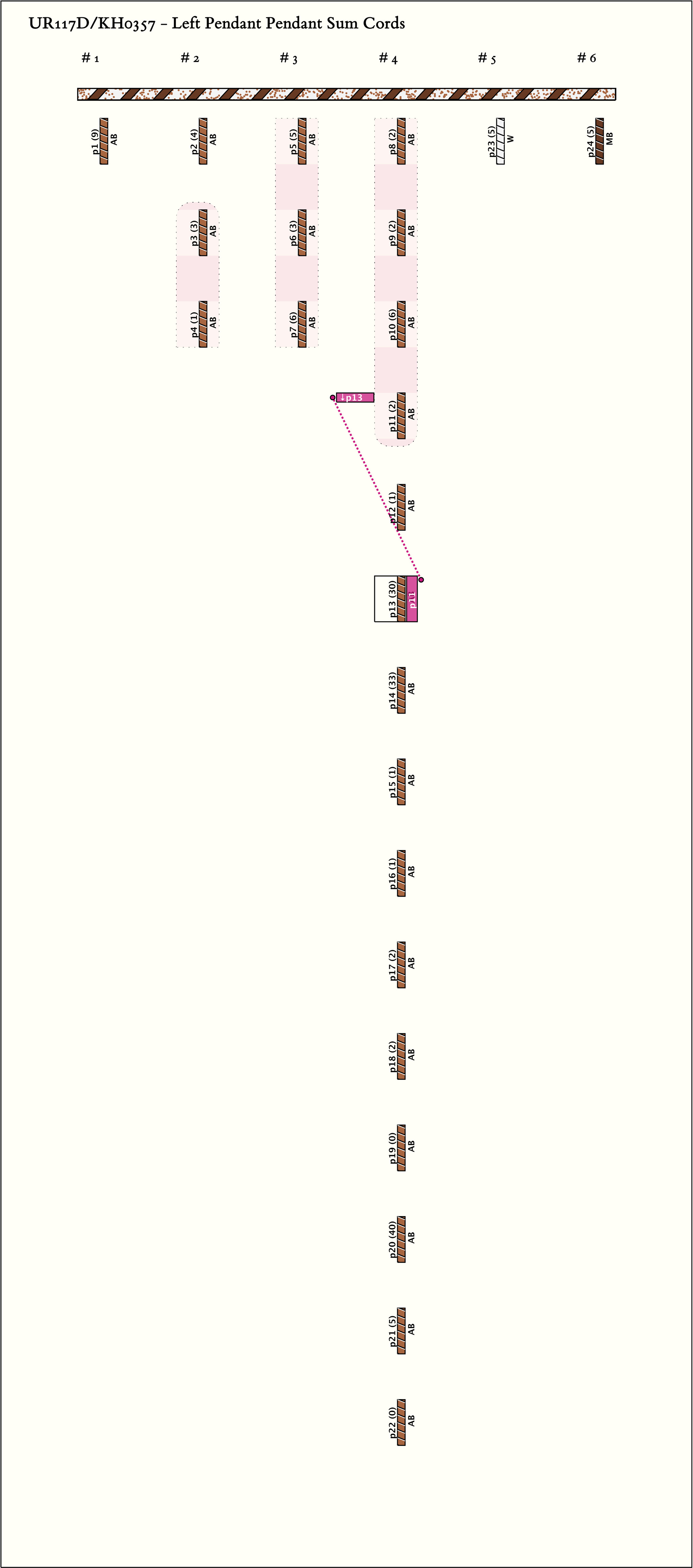 (1) UR 117 A, B, C, and D are attached to each other. The knotted end of the primary cords are slipped through the doubled end of the following primary cord.
