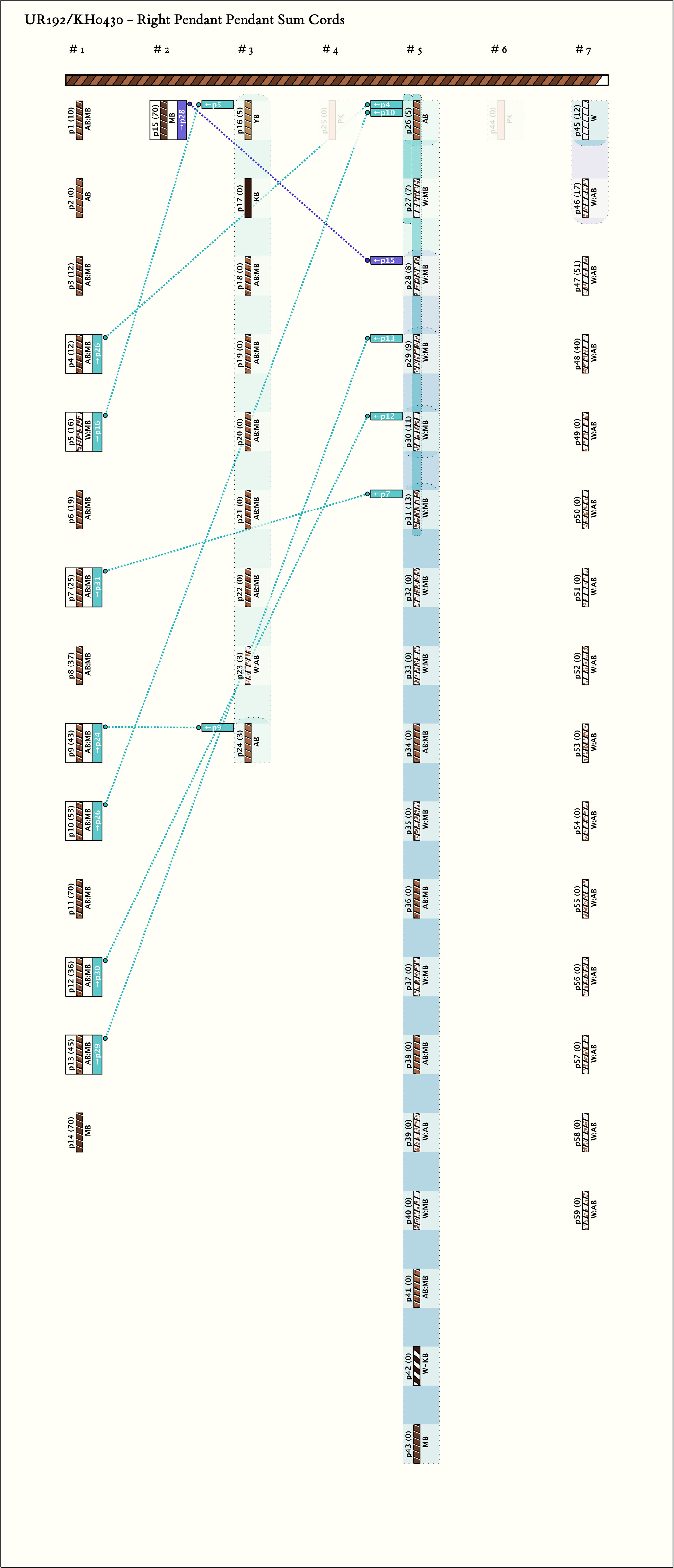 M1 and M2 are composed of threads wrapped around primary cord; very frayed. Each covers ca. 1.5 cm. of hte primary cord.