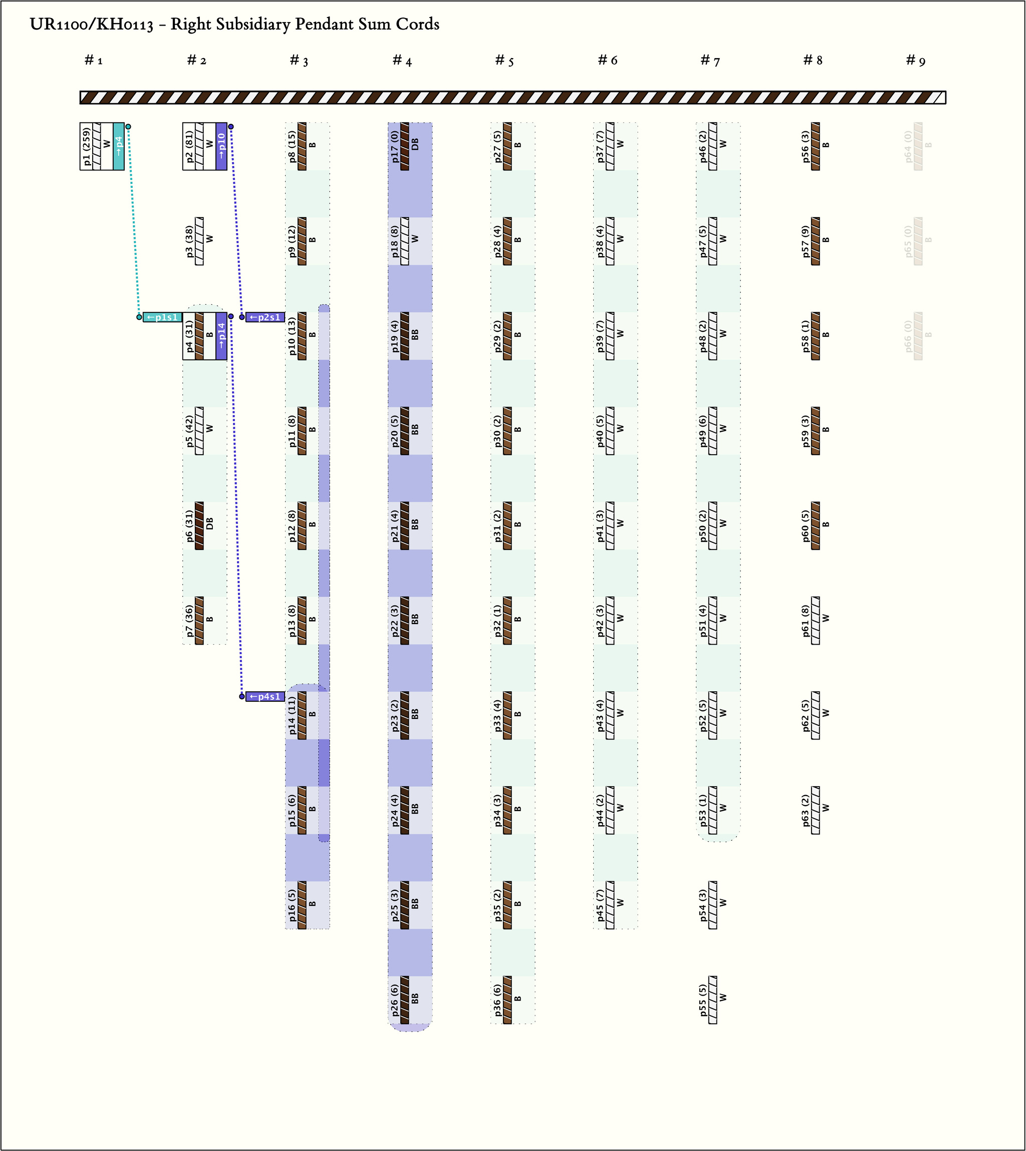 - The value of the first single cord is the sum of the values of the pendants in part 1. Similarly, the value on its subsidiary is the sum of the values on the subsidiary cords of part 1.