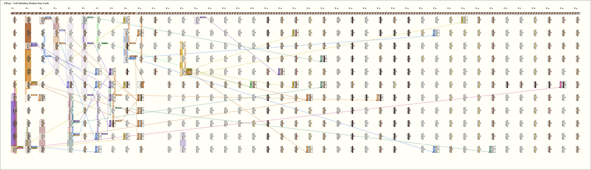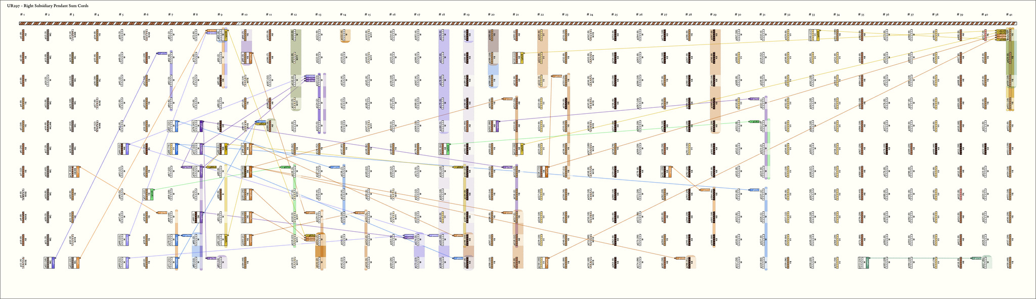 This khipu was transcribed by Ashok Khosla, from copies of notes left by Gary Urton at Dumbarton Oaks, and found by Mack FitzPatrick.