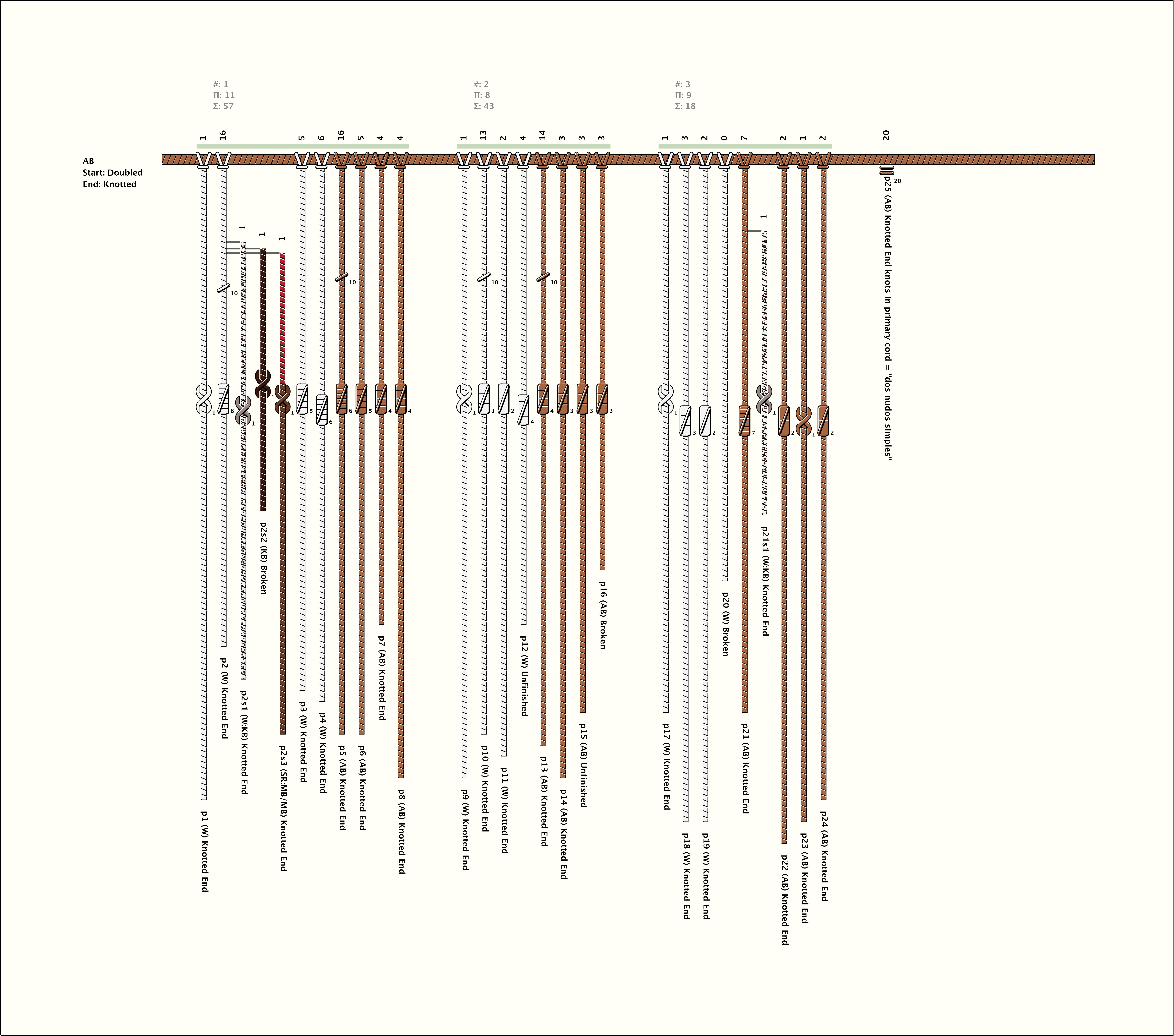 Total Number of Cords: 29 Number of Ascher Cord Colors: 6 Similar Khipu: Previous (UR232) Next (UR252) Catalog: HP033 Khipu Notes: |