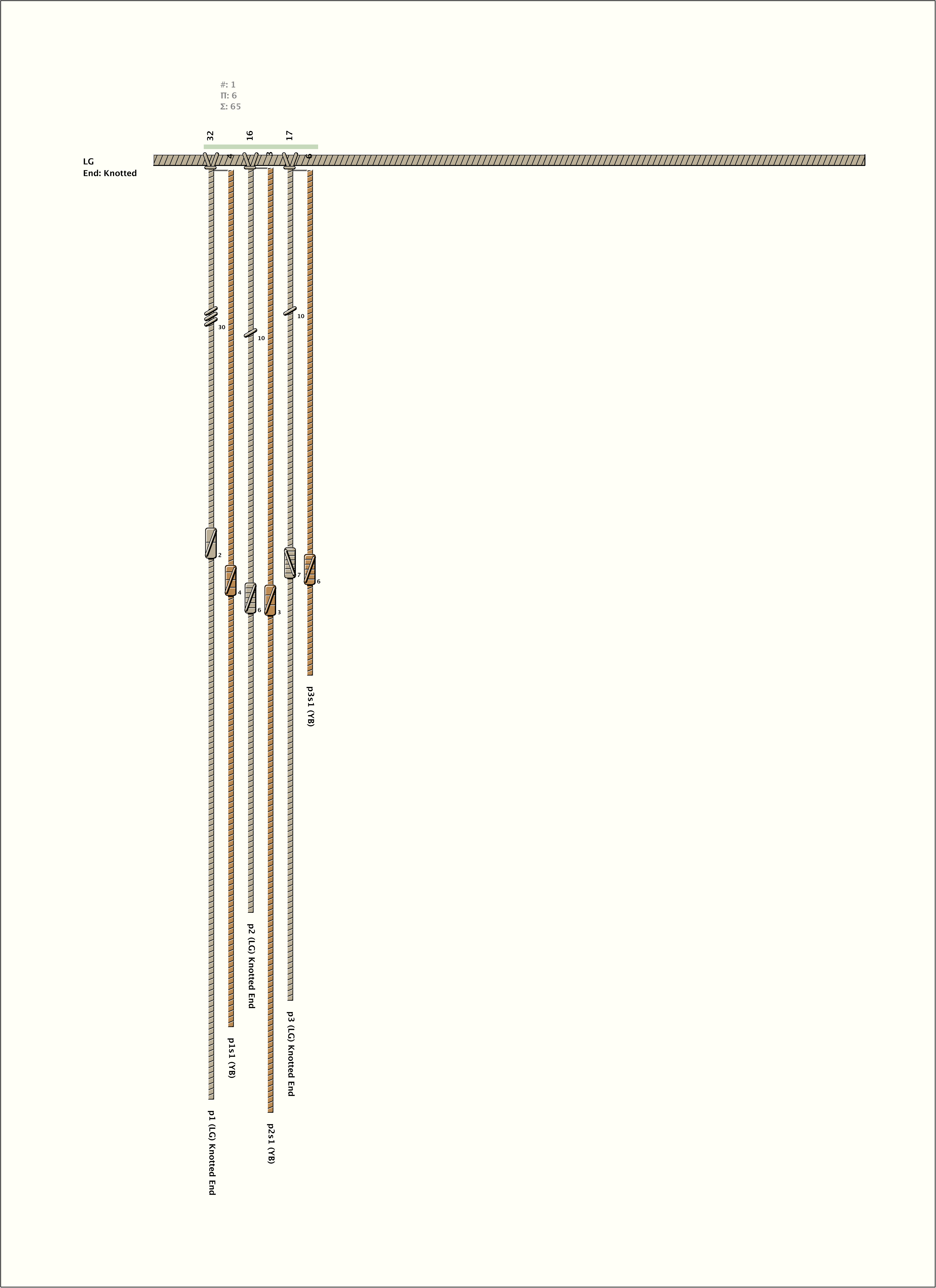 Total Number of Cords: 6 Number of Ascher Cord Colors: 2 Similar Khipu: Previous (JC004) Next (JC020) Catalog: JC019 Khipu Notes: |