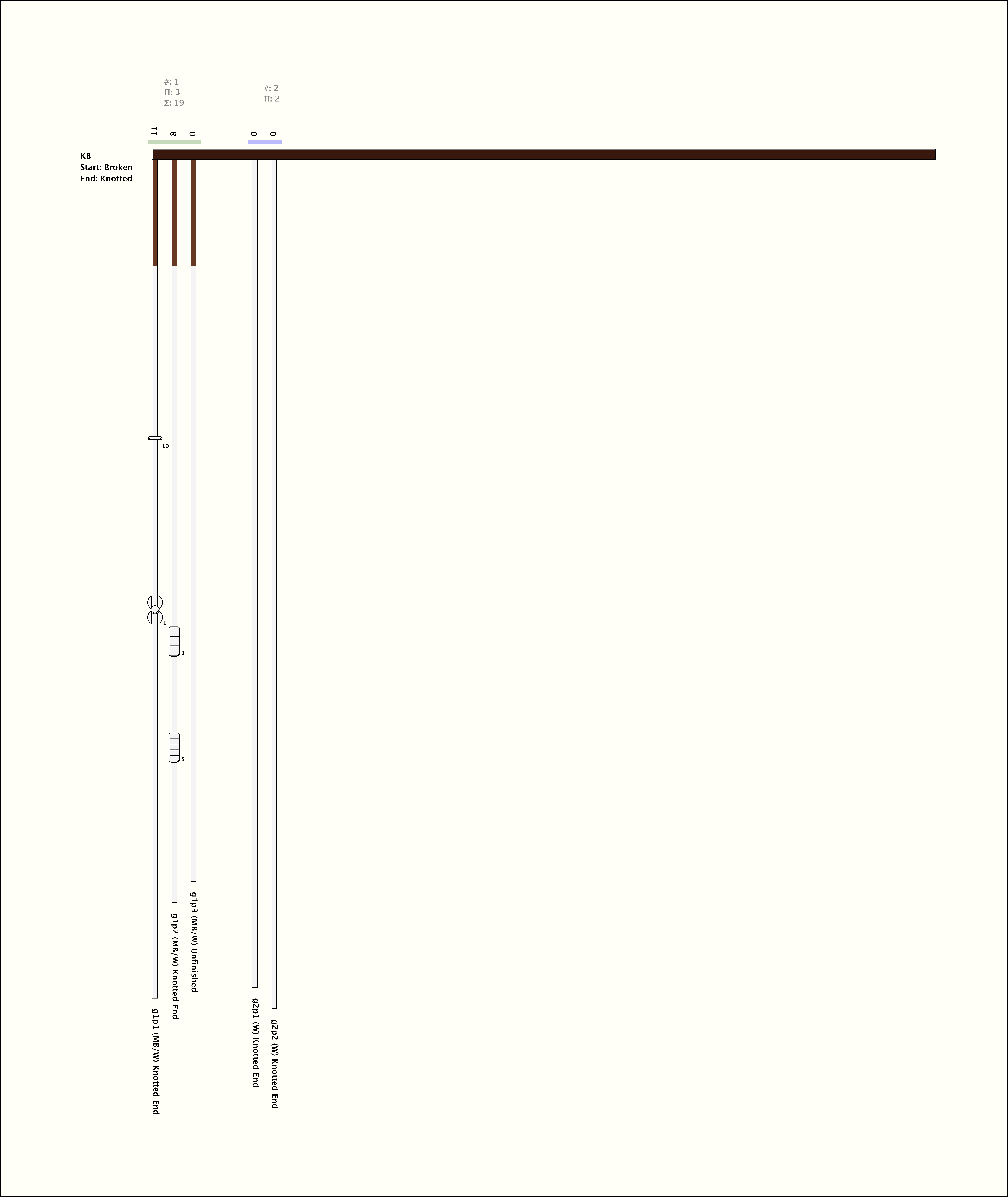 # of Groups & Cords: 2 Groups, 5 Cords - 5p # of Ascher Cord Colors: 3 Similar Khipu: Previous (KH0155) Next (KH0084) Catalog: KH0078 Khipu Notes: Khipu Notes |