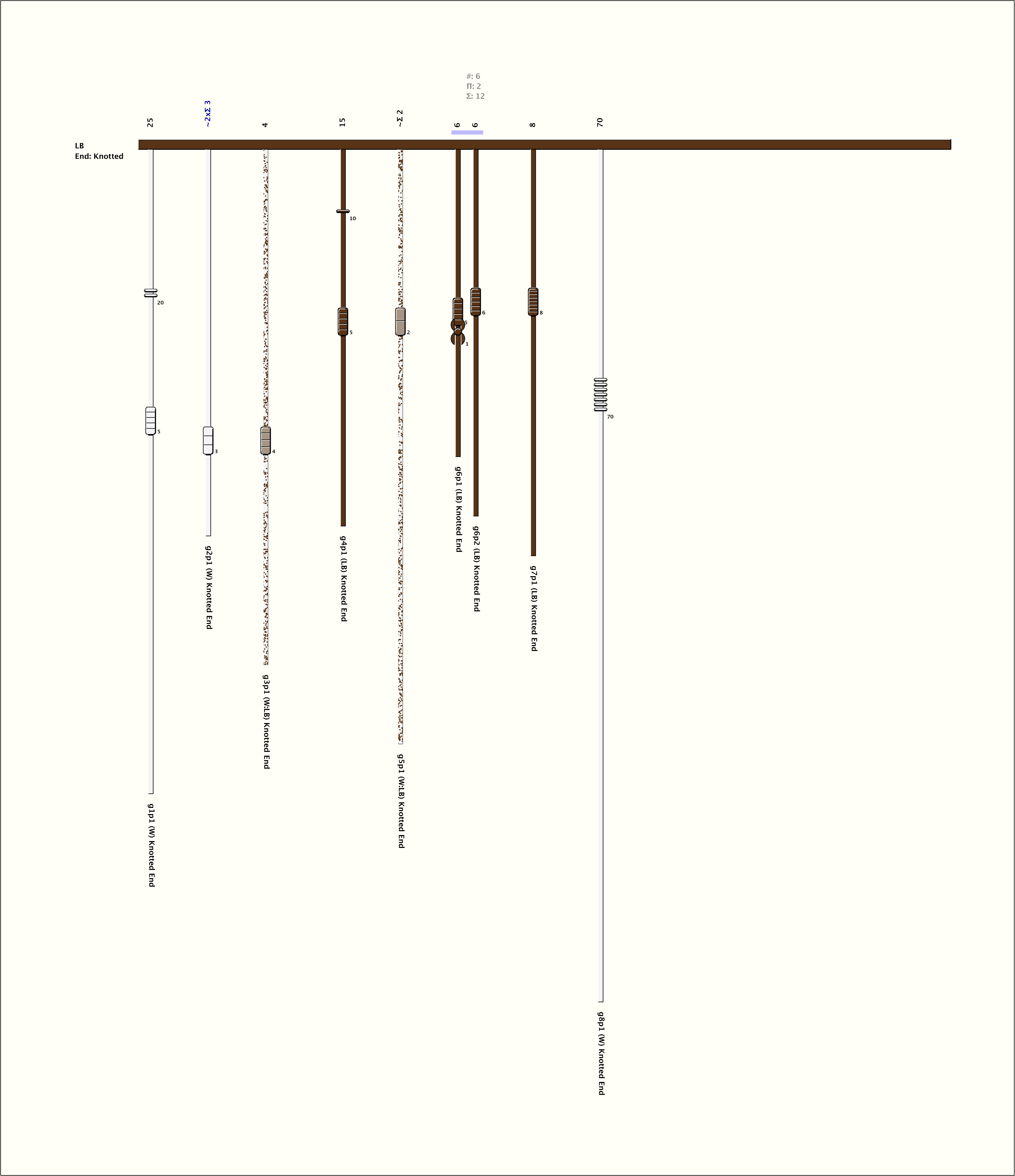 # of Groups & Cords: 8 Groups, 9 Cords - 9p # of Ascher Cord Colors: 3 Similar Khipu: Previous (KH0026) Next (KH0200) Catalog: KH0202 Khipu Notes: Khipu Notes |