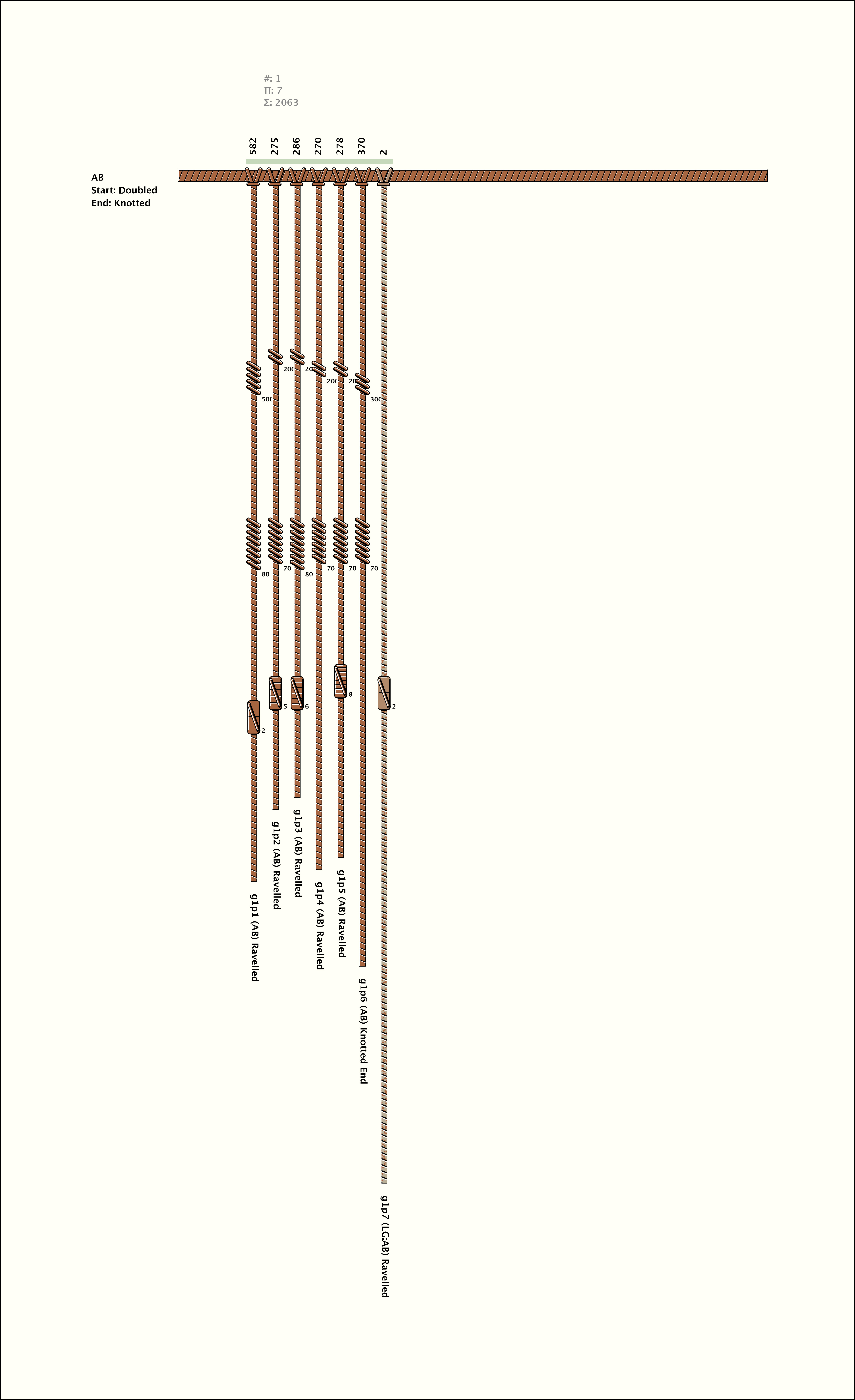 # of Groups & Cords: 1 Groups, 7 Cords - 7p # of Ascher Cord Colors: 2 Similar Khipu: Previous (KH0365) Next (KH0416) Catalog: KH0344 Khipu Notes: |