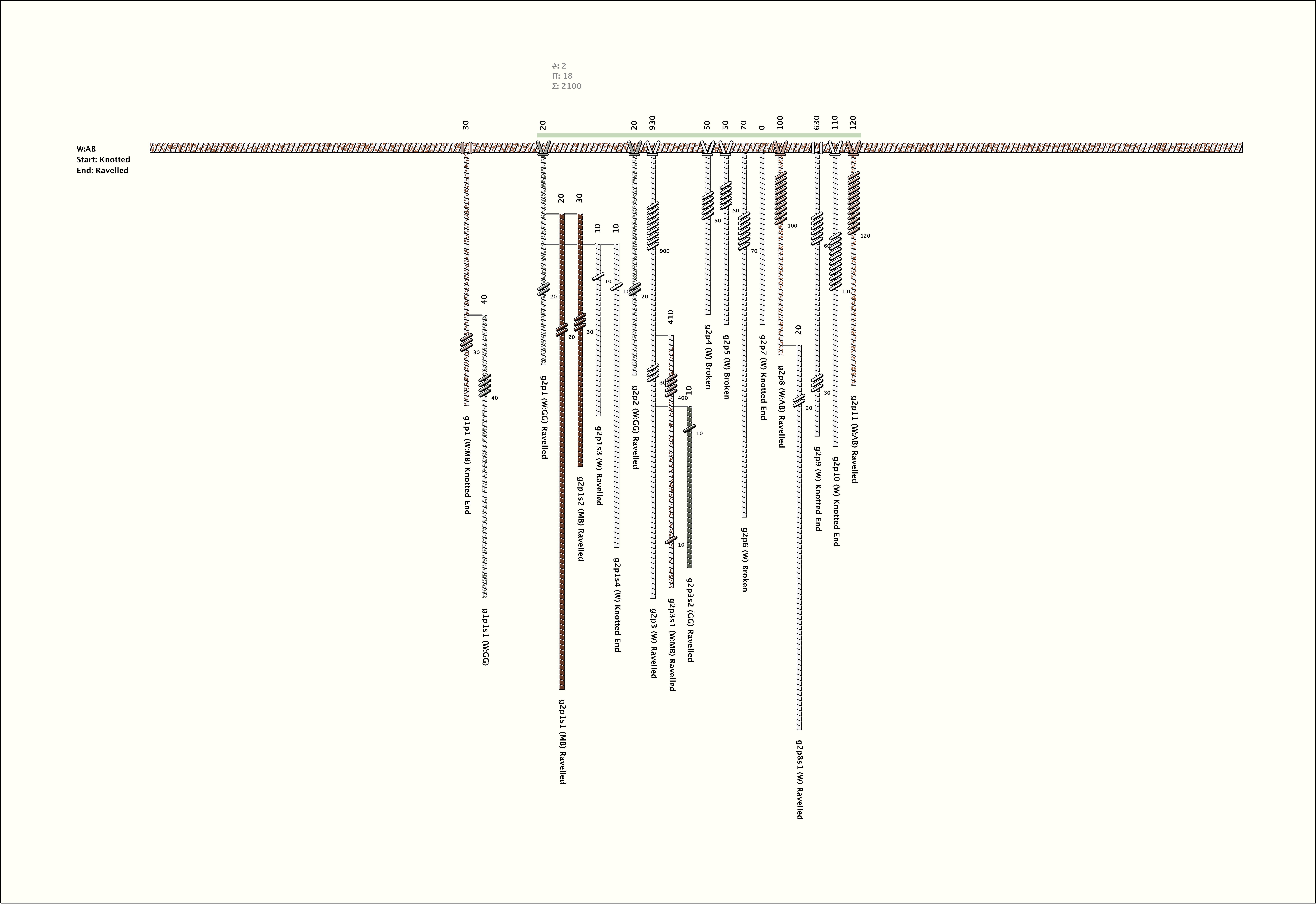 # of Groups & Cords: 2 Groups, 20 Cords - (12p, 8s) # of Ascher Cord Colors: 6 Similar Khipu: Previous (KH0536) Next (KH0508) Catalog: KH0391 Khipu Notes: Khipu Notes |