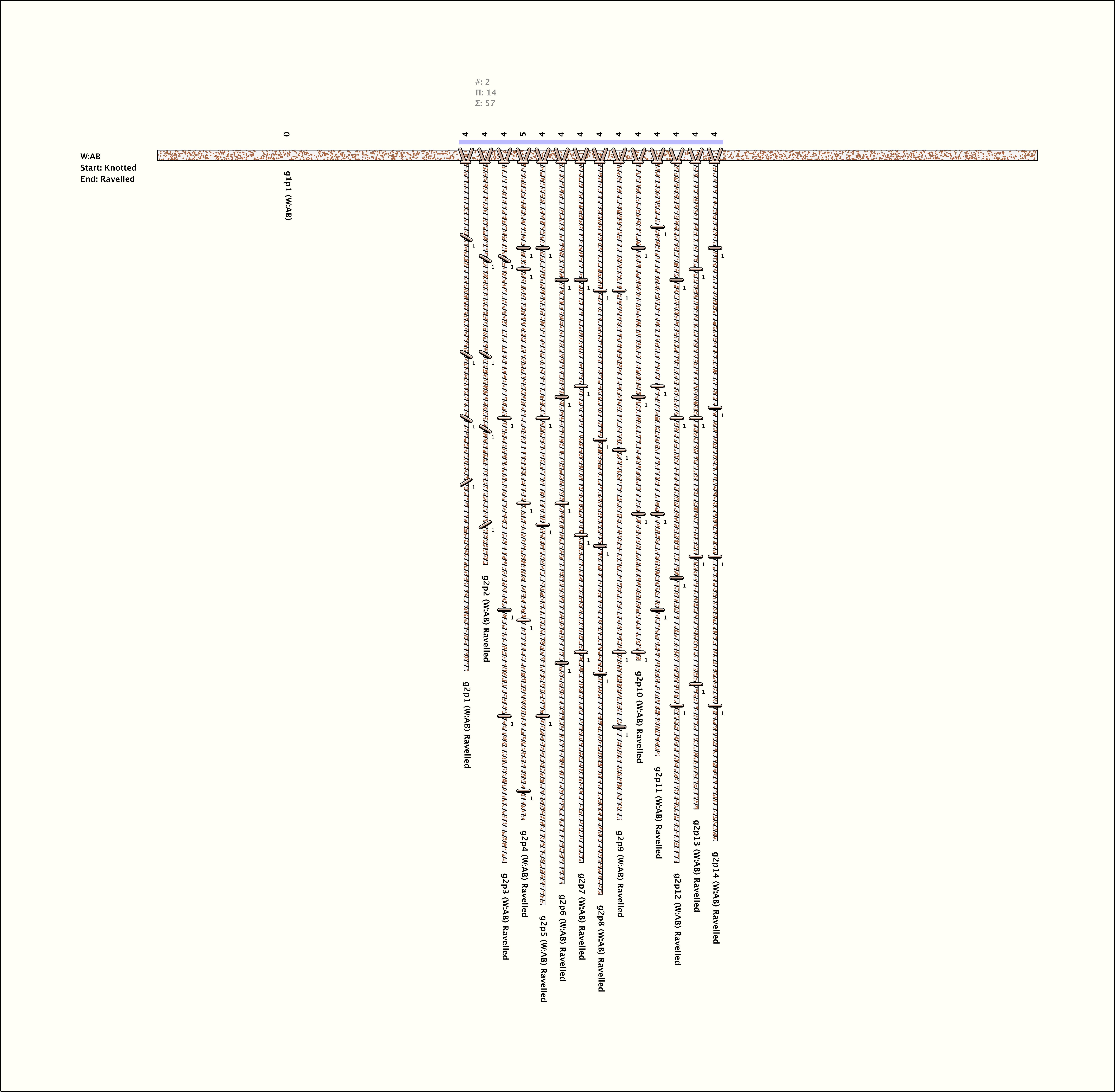 # of Groups & Cords: 2 Groups, 15 Cords - 15p # of Ascher Cord Colors: 1 Similar Khipu: Previous (KH0344) Next (KH0597) Catalog: KH0416 Khipu Notes: Khipu Notes |