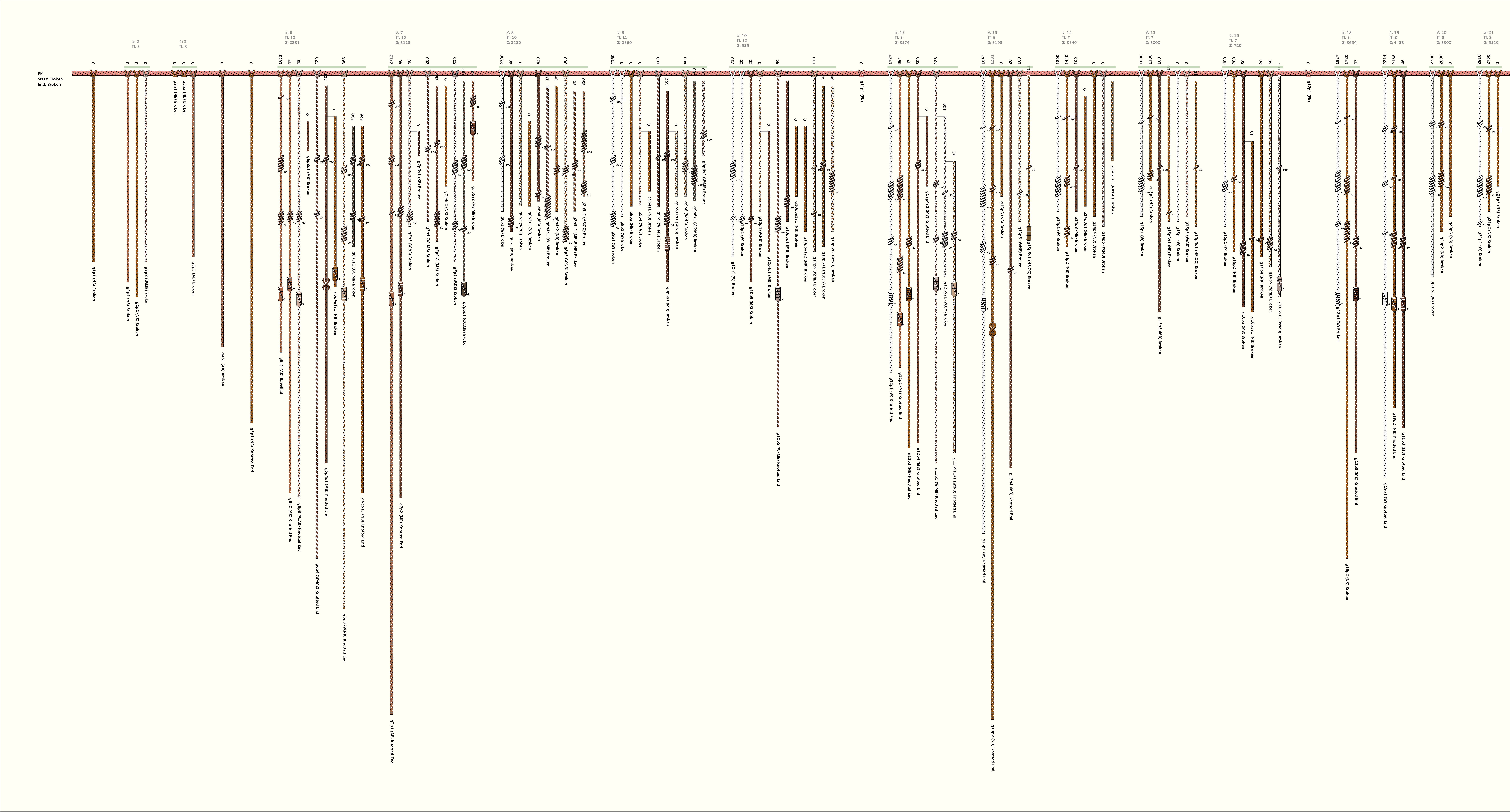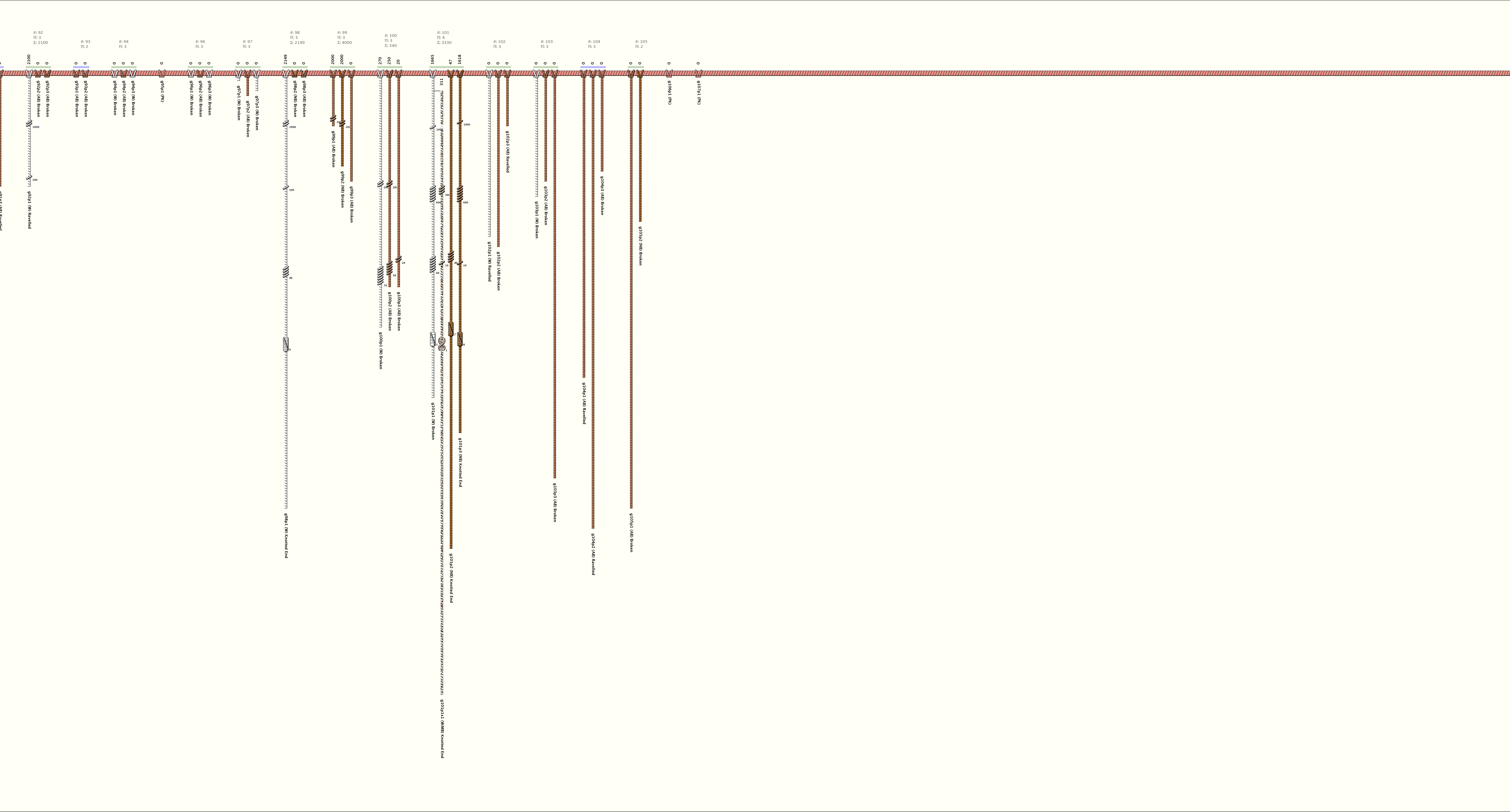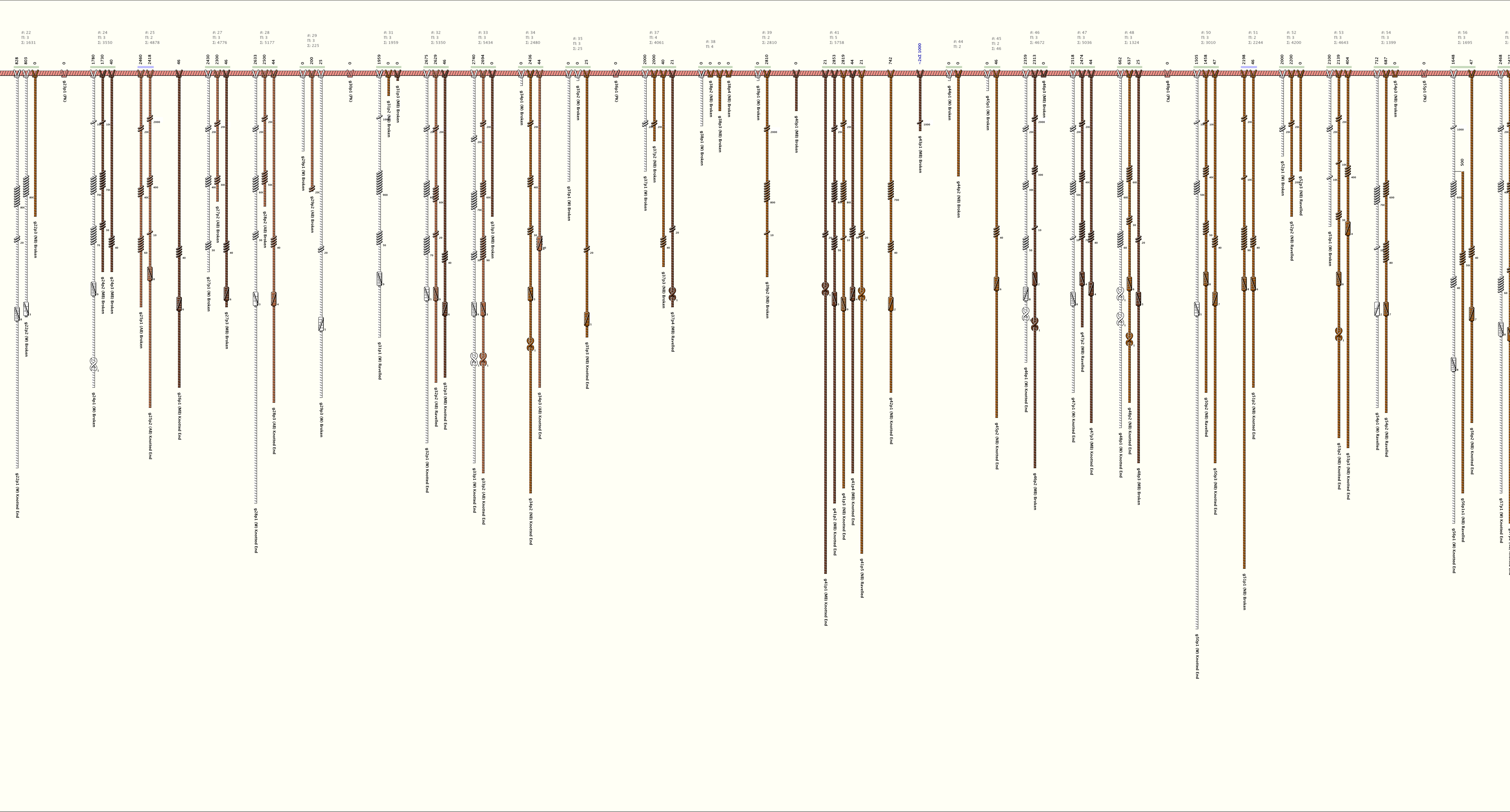 # of Groups & Cords: 107 Groups, 330 Cords - (289p, 41s) # of Ascher Cord Colors: 17 Similar Khipu: Previous (KH0393) Next (KH0255) Catalog: KH0506 Khipu Notes: |