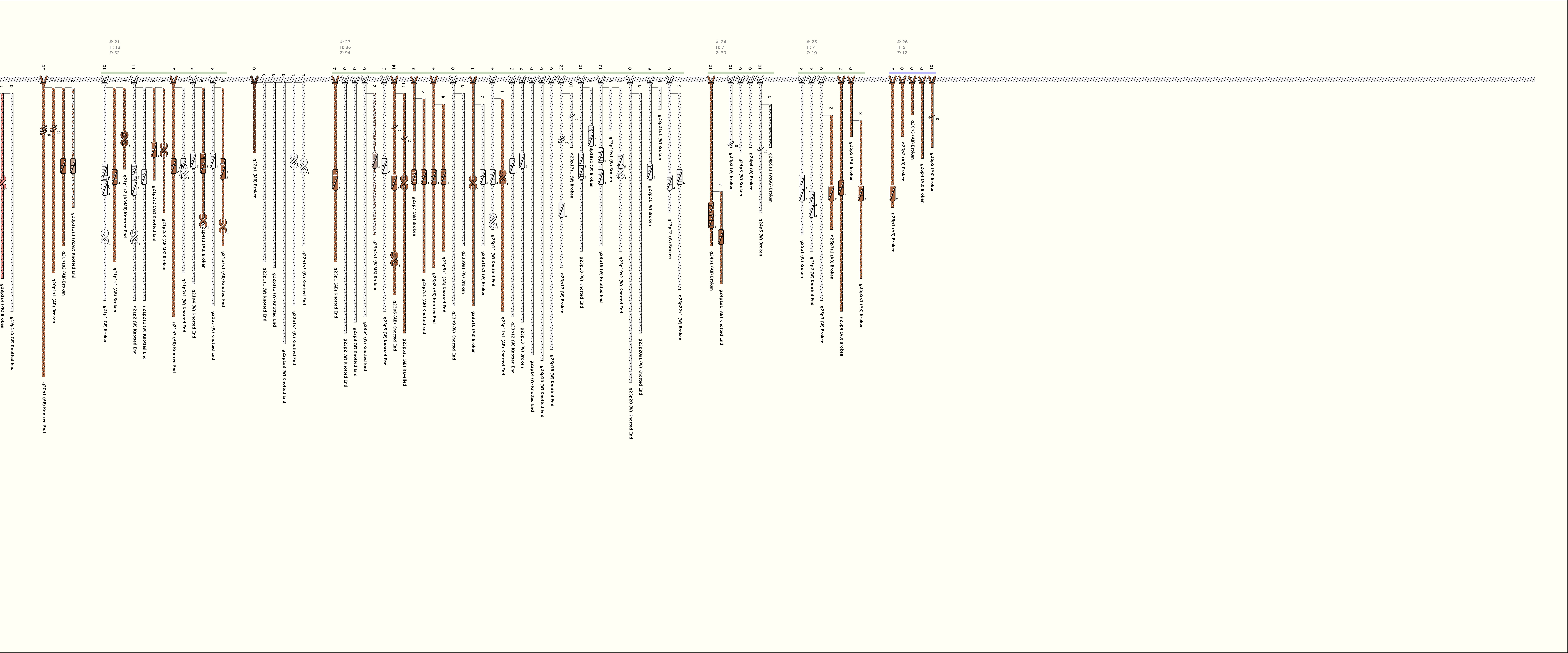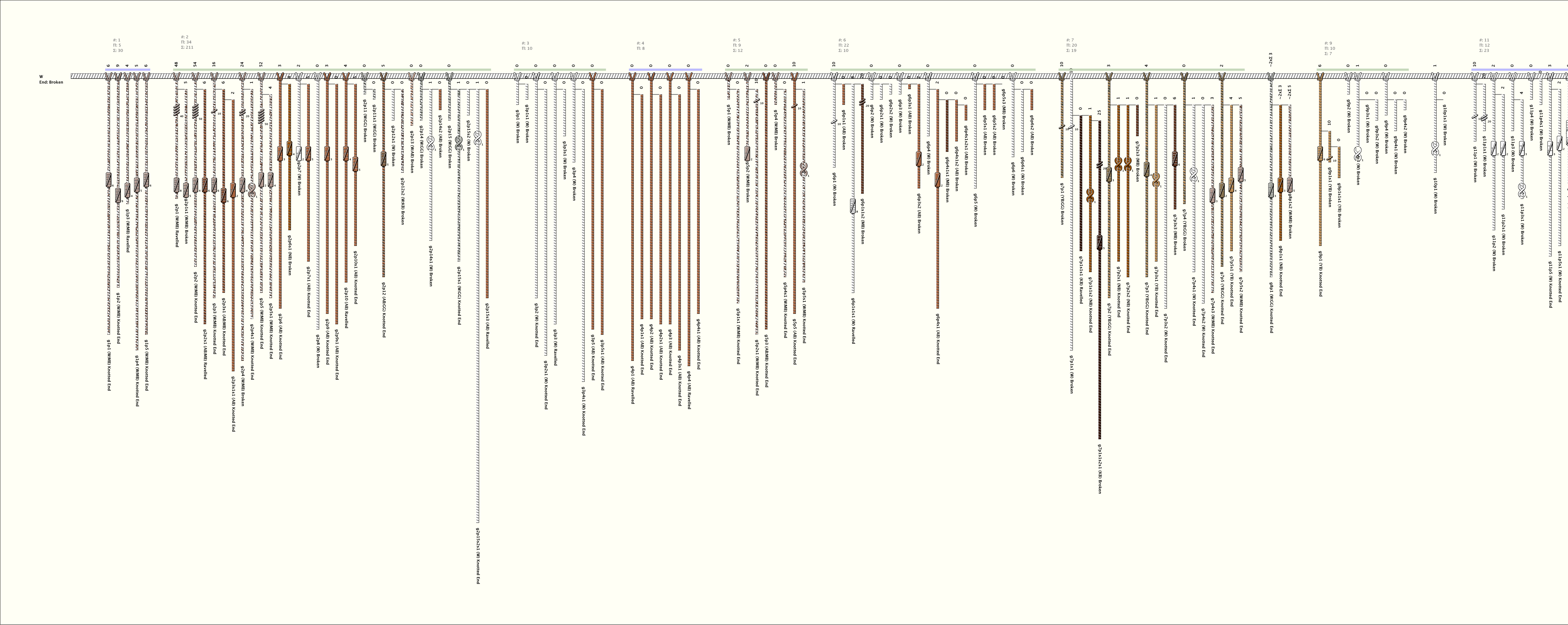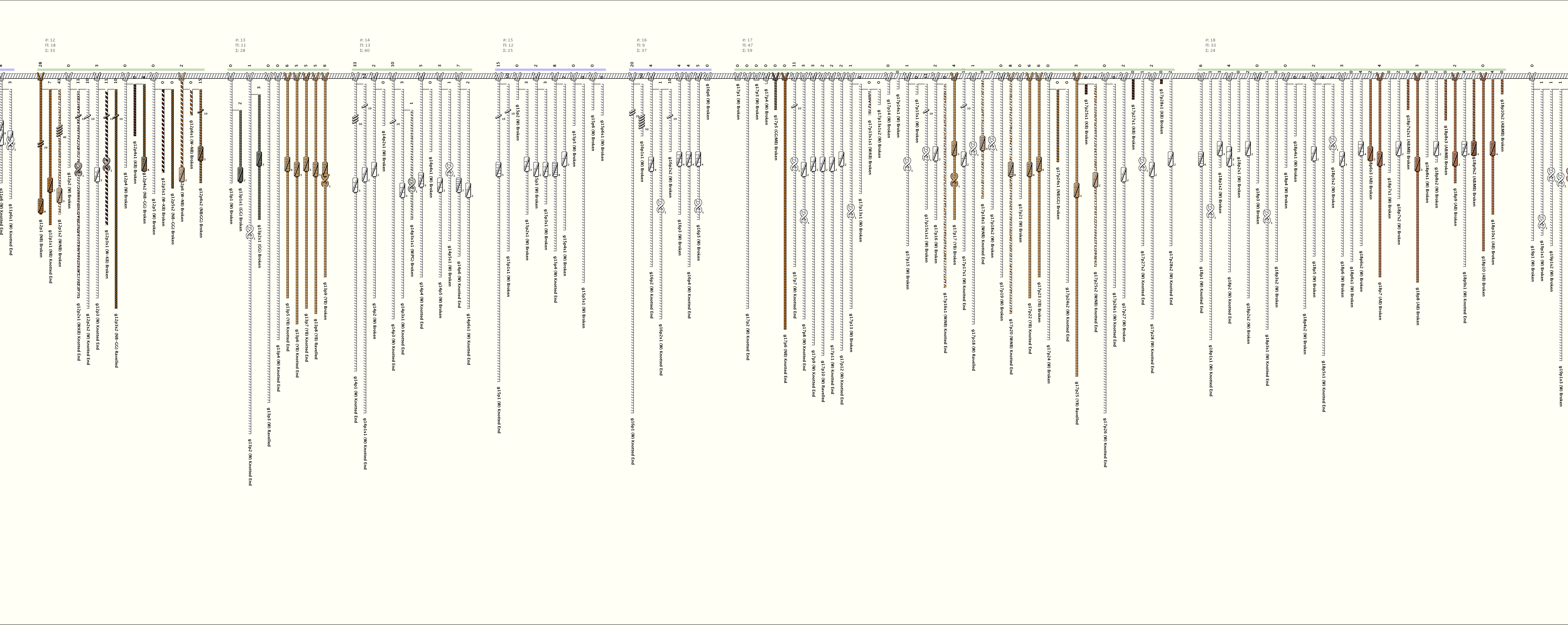 # of Groups & Cords: 26 Groups, 362 Cords - (173p, 189s) # of Ascher Cord Colors: 22 Similar Khipu: Previous (KH0604B) Next (KH0427) Catalog: KH0509 Khipu Notes: |