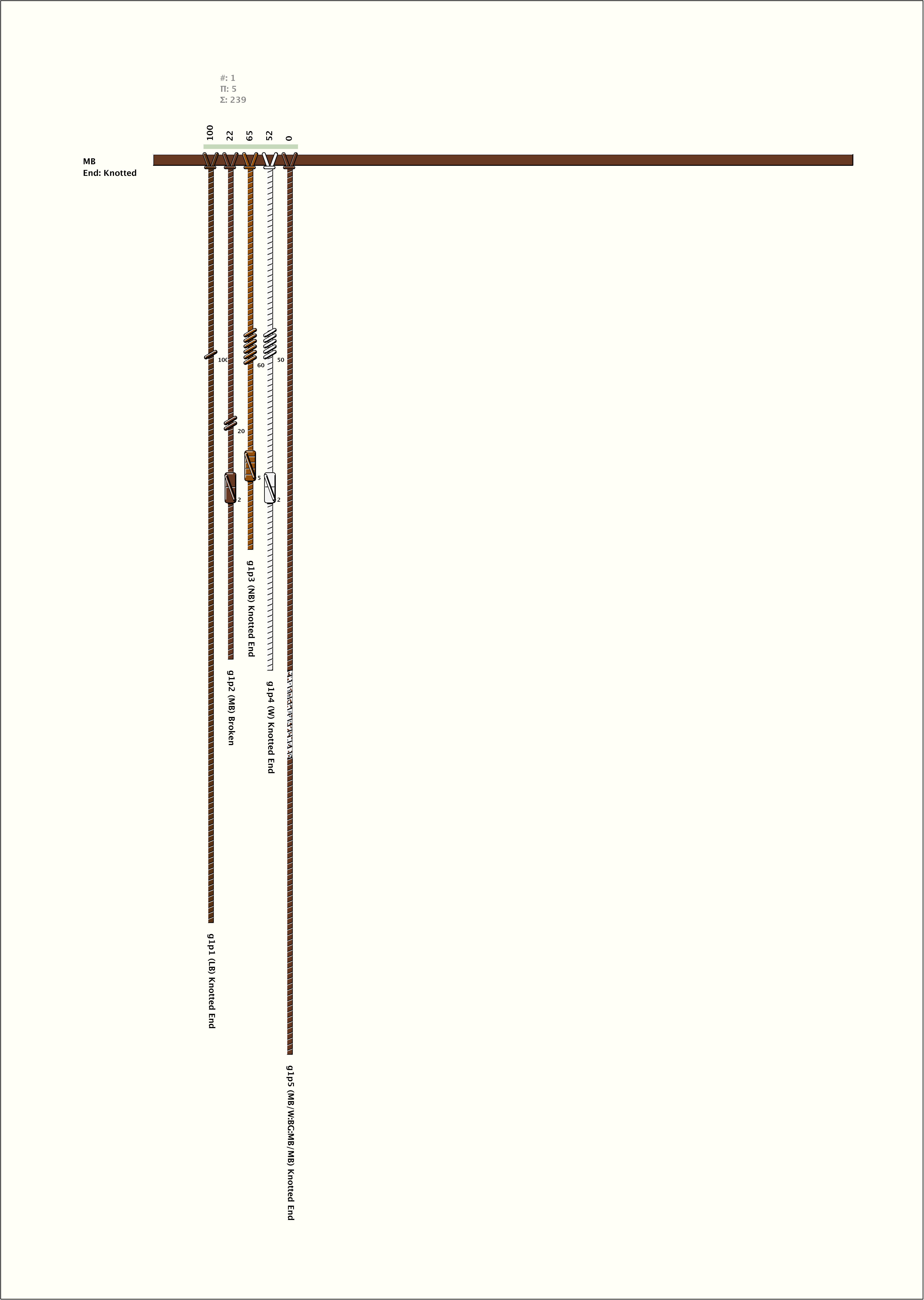 # of Groups & Cords: 1 Groups, 5 Cords - 5p # of Ascher Cord Colors: 5 Similar Khipu: Previous (KH0531) Next (KH0625) Catalog: KH0532 Khipu Notes: |