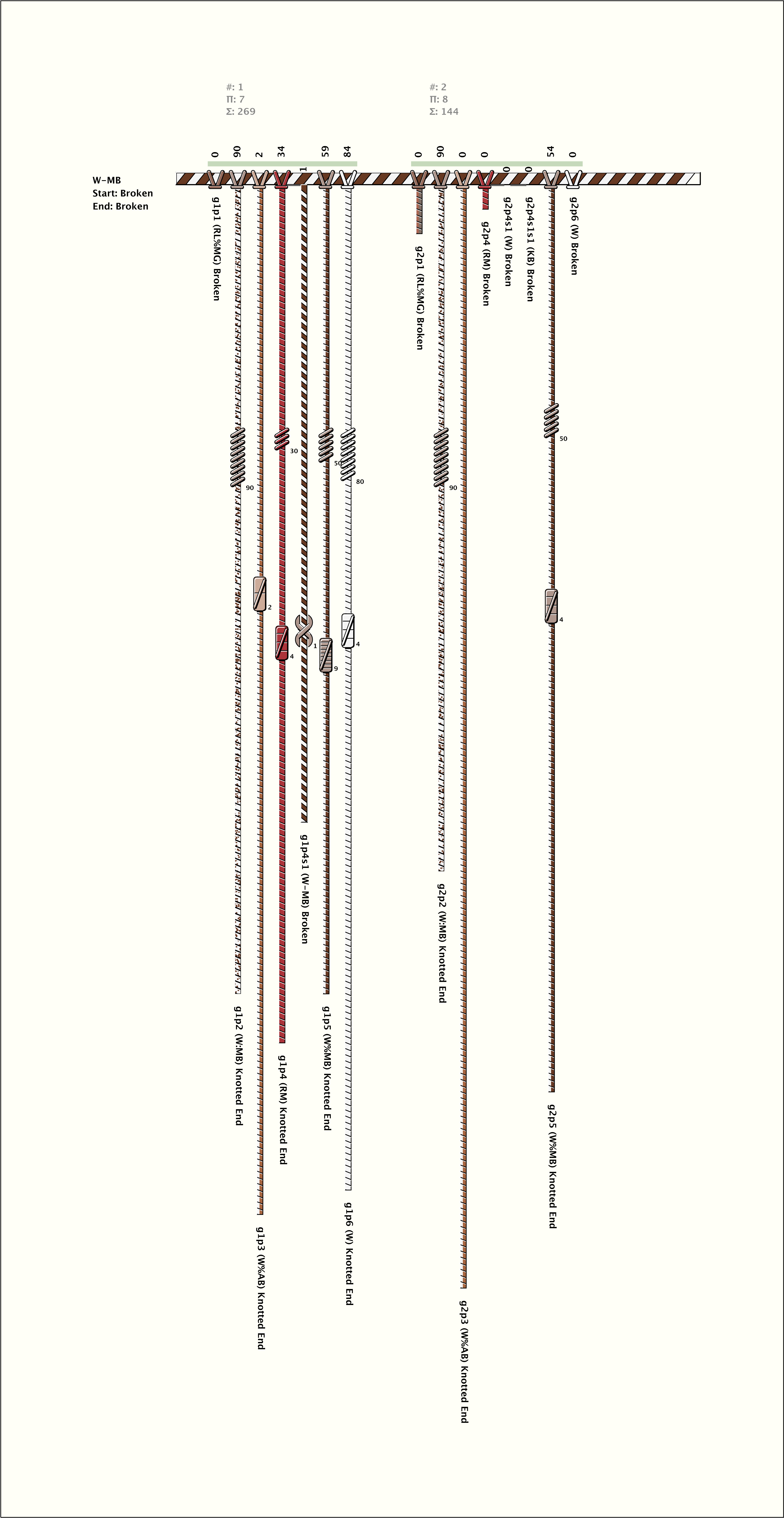 # of Groups & Cords: 2 Groups, 15 Cords - (12p, 3s) # of Ascher Cord Colors: 8 Similar Khipu: Previous (KH0677) Next (KH0575) Catalog: KH0545 Khipu Notes: |