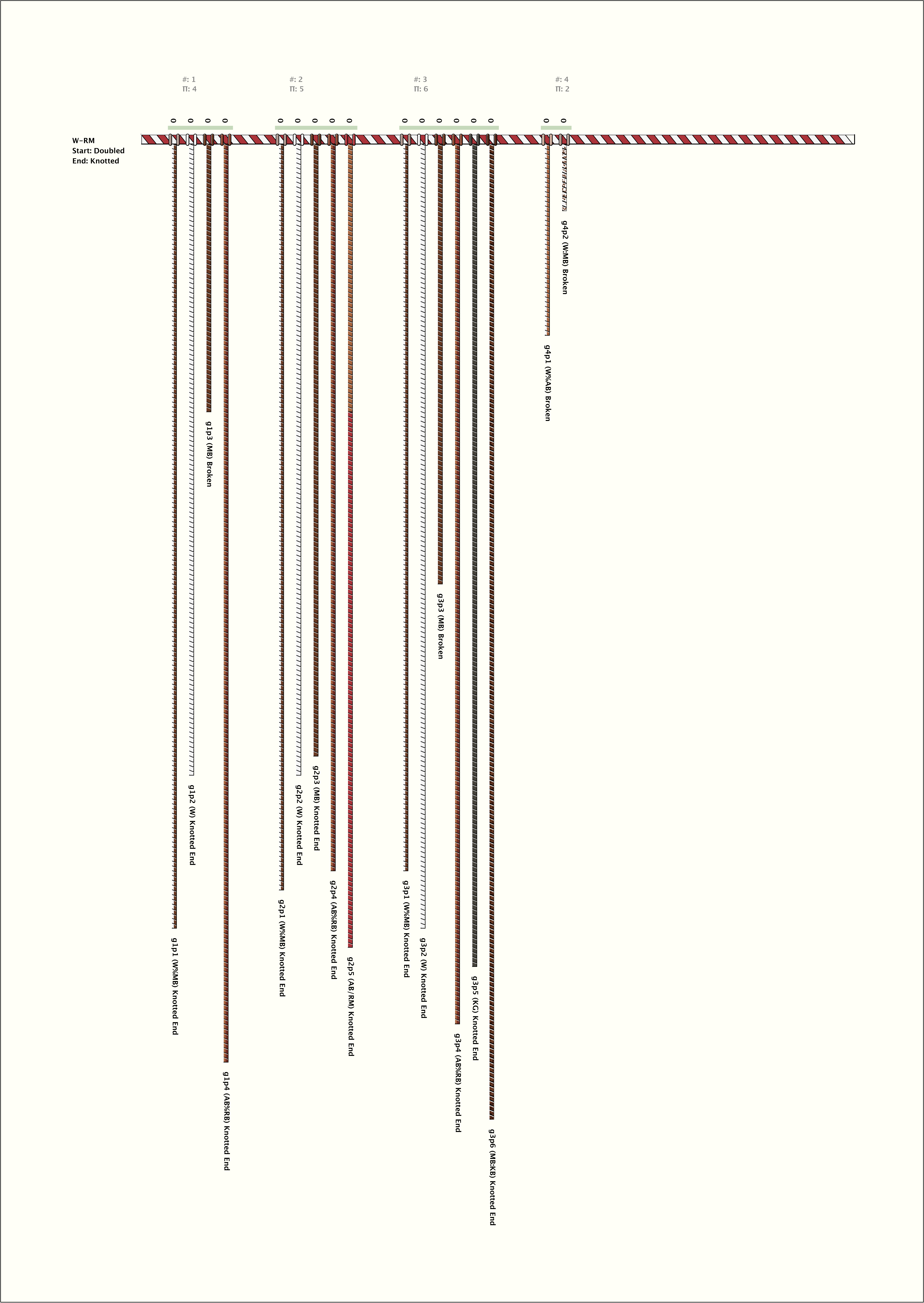 # of Groups & Cords: 4 Groups, 17 Cords - 17p # of Ascher Cord Colors: 11 Similar Khipu: Previous (KH0557) Next (KH0399) Catalog: KH0558 Khipu Notes: |