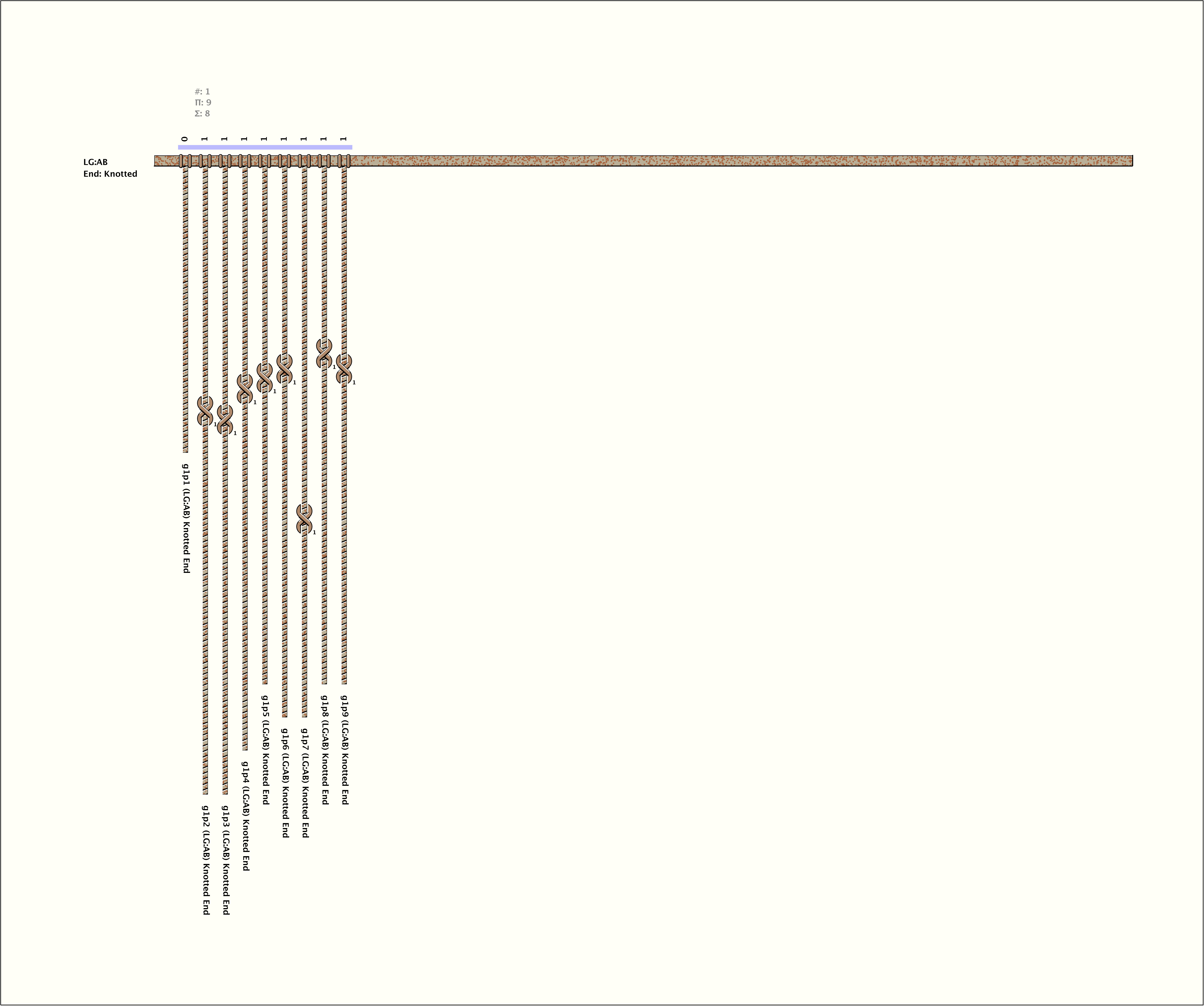 # of Groups & Cords: 1 Groups, 9 Cords - 9p # of Ascher Cord Colors: 1 Similar Khipu: Previous (KH0528) Next (KH0624) Catalog: KH0623 Khipu Notes: |