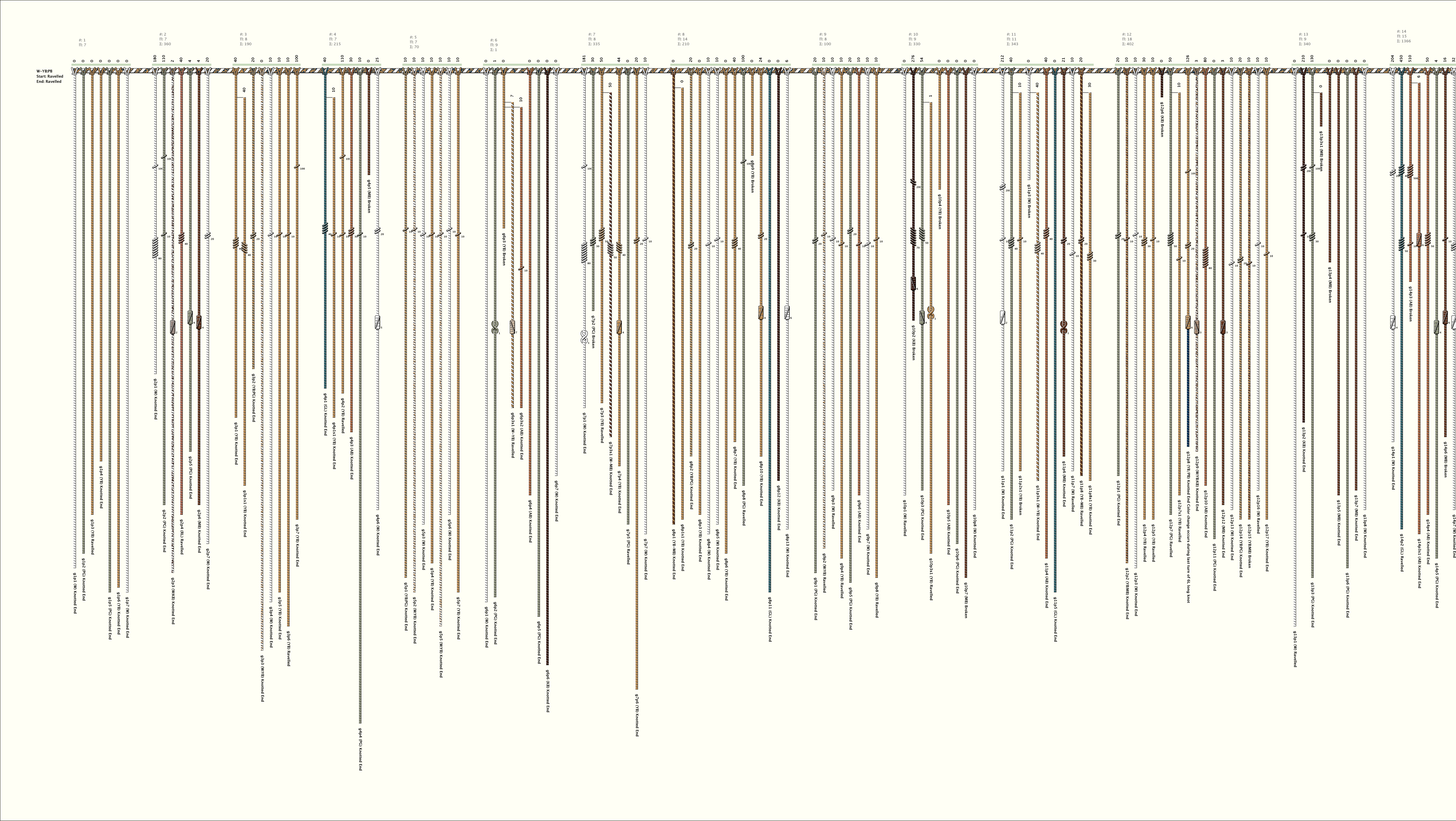# of Groups & Cords: 21 Groups, 308 Cords - (264p, 44s) # of Ascher Cord Colors: 24 Similar Khipu: Previous (KH0395) Next (KH0545) Catalog: KH0677 Khipu Notes: Khipu Notes |