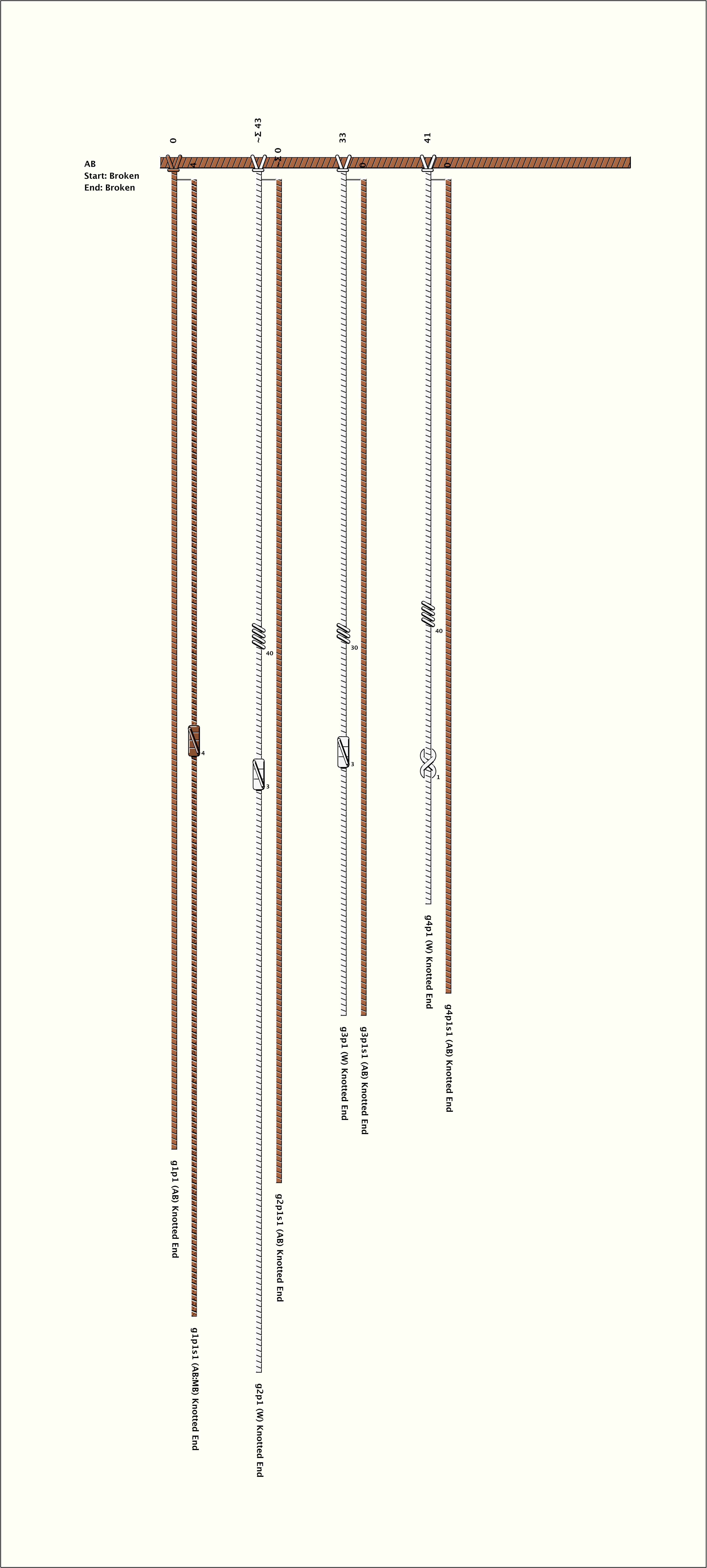 # of Groups & Cords: 4 Groups, 8 Cords - (4p, 4s) # of Ascher Cord Colors: 3 Similar Khipu: Previous (KH0356) Next (KH0370) Catalog: KH0684 Khipu Notes: Khipu Notes |