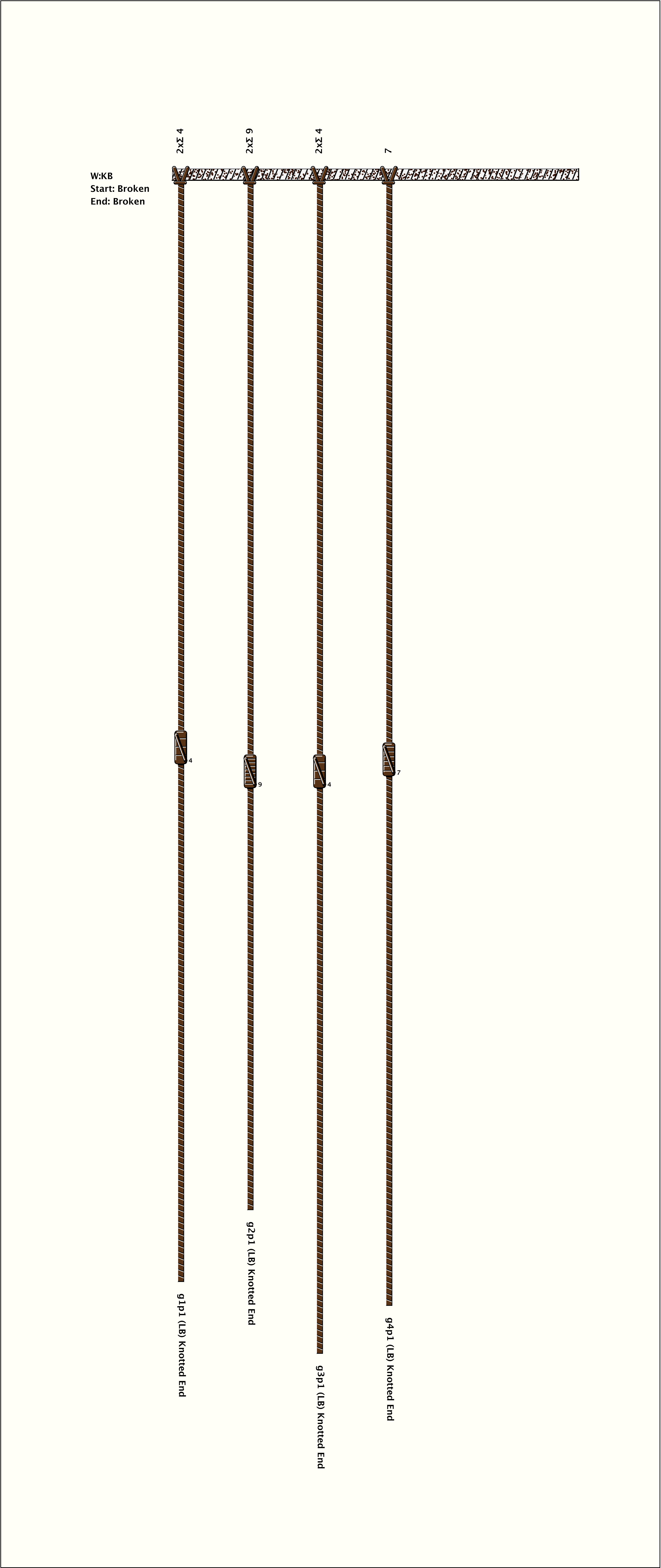 # of Groups & Cords: 4 Groups, 4 Cords - 4p # of Ascher Cord Colors: 2 Similar Khipu: Previous (KH0384) Next (KH0687) Catalog: KH0685 Khipu Notes: Khipu Notes |